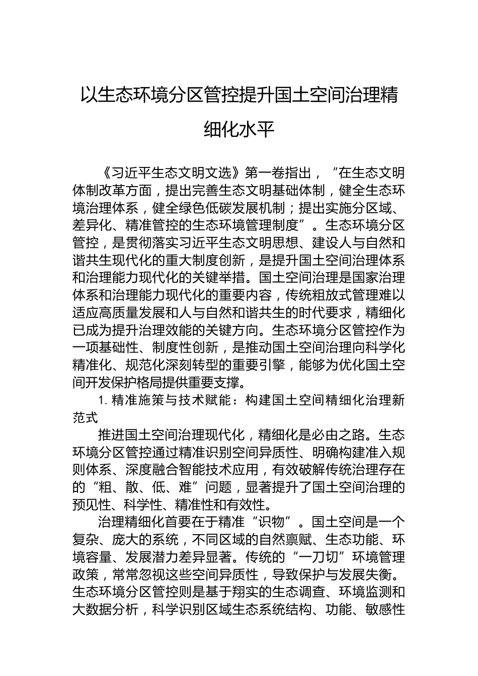 以生態(tài)環(huán)境分區(qū)管控提升國土空間治理精細(xì)化水平VIP免費