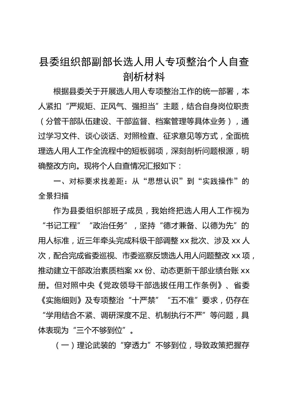 縣委組織部副部長選人用人專項整治個人自查剖析材料VIP免費