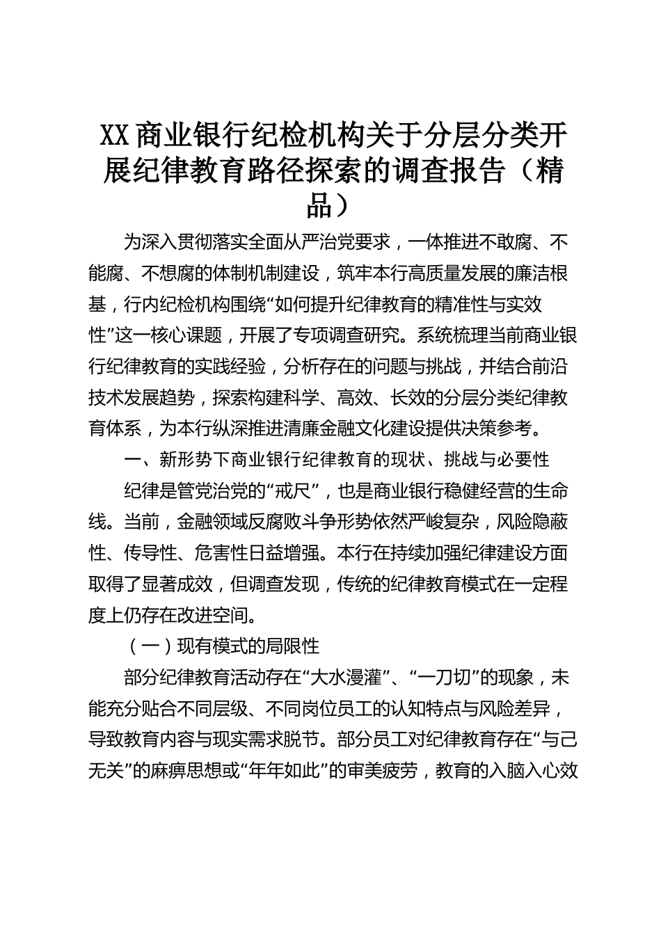 XX商業(yè)銀行紀(jì)檢機構(gòu)關(guān)于分層分類開展紀(jì)律教育路徑探索的調(diào)查報告(精品)VIP免費