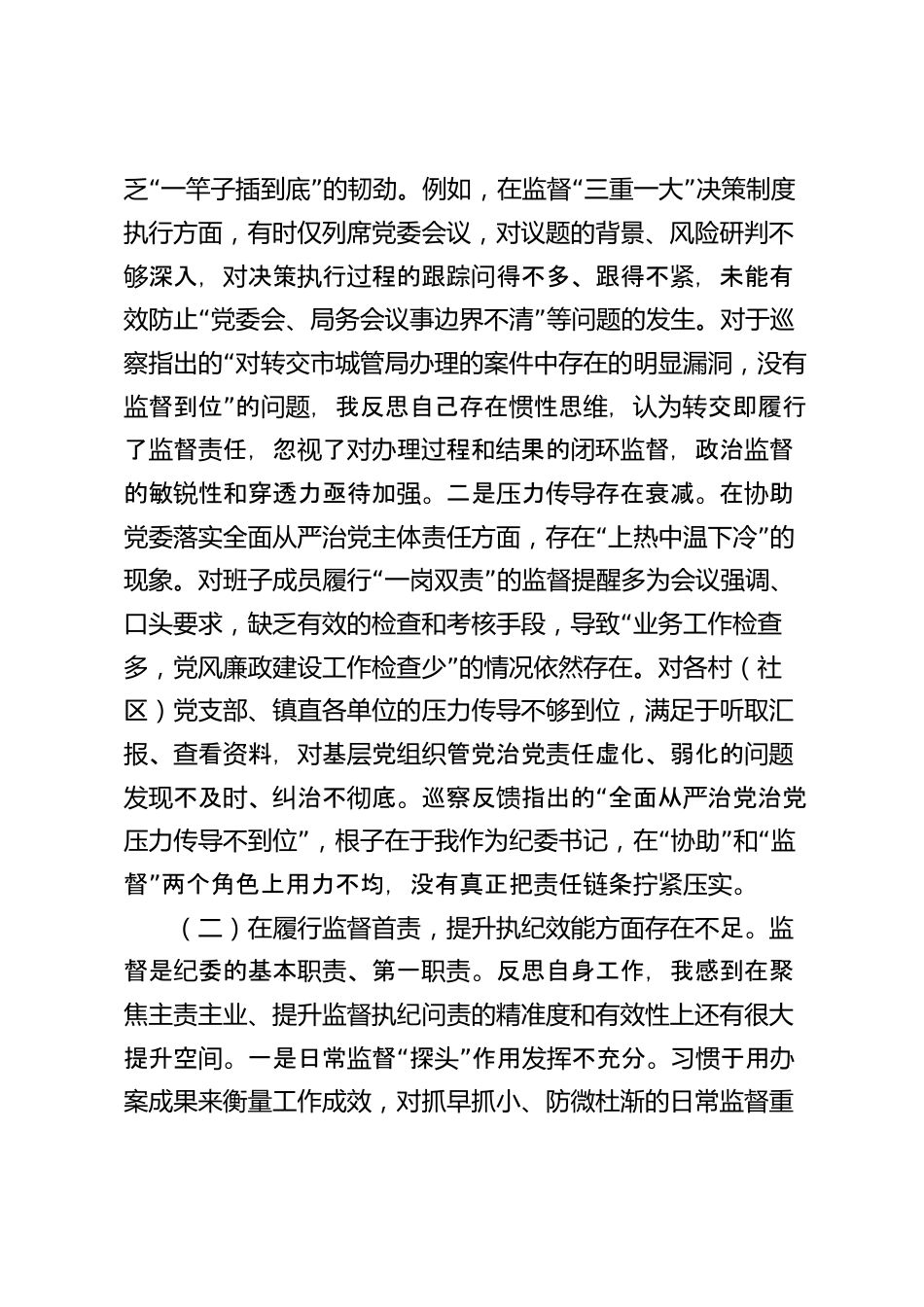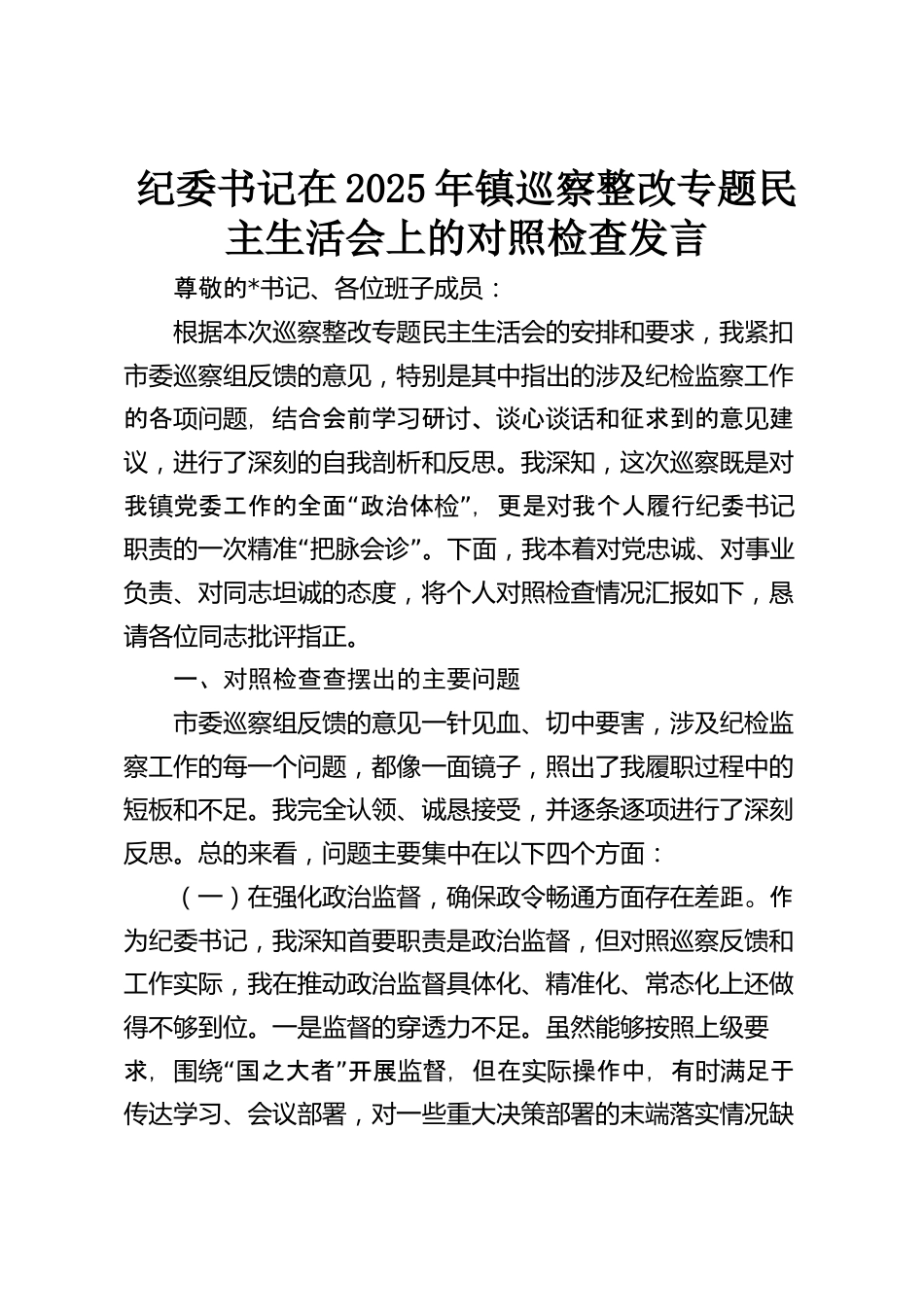 紀委書記在2025年鎮(zhèn)巡察整改專題民主生活會上的對照檢查發(fā)言VIP免費