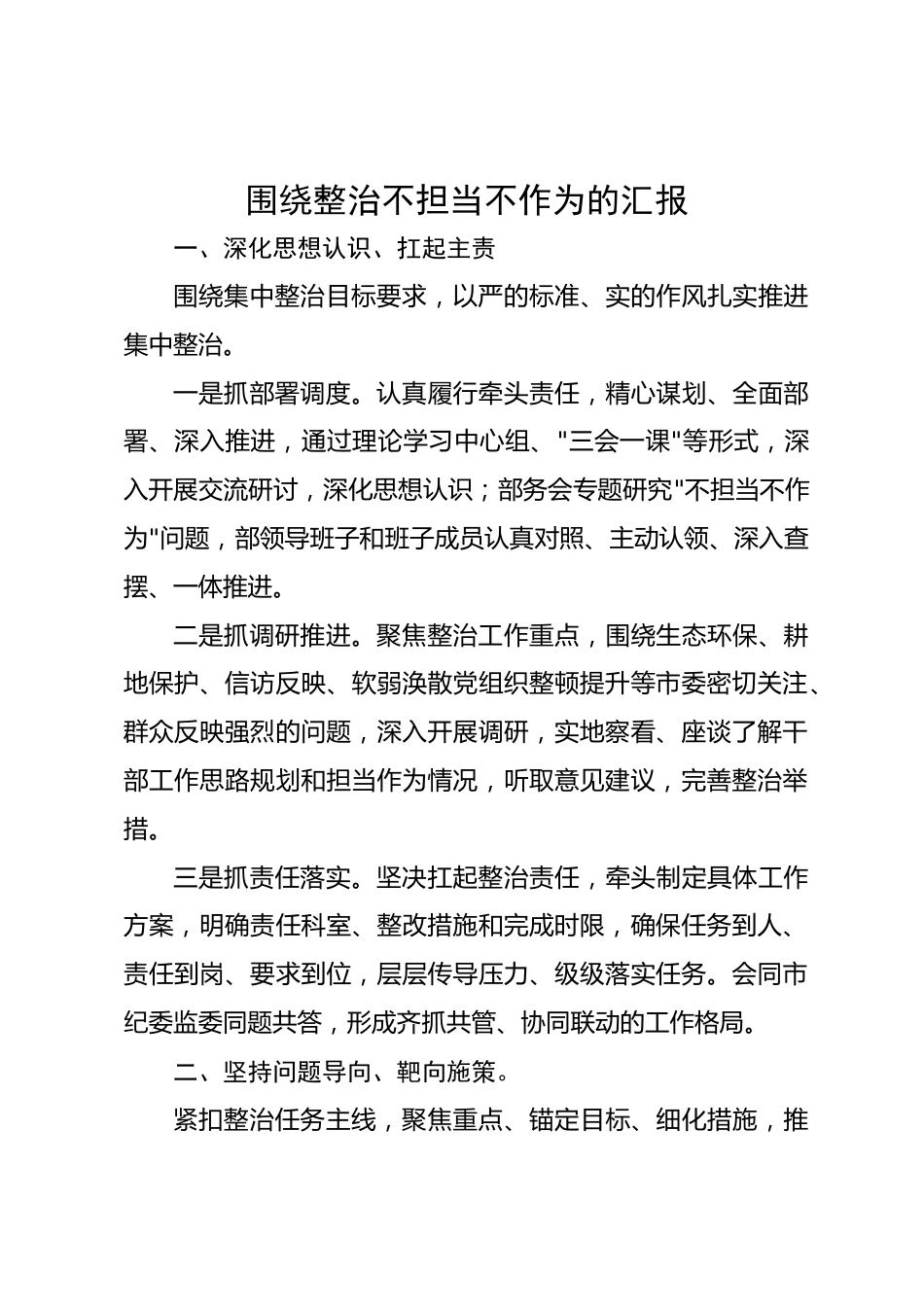 2025圍繞整治不擔(dān)當(dāng)不作為的匯報(bào)VIP免費(fèi)