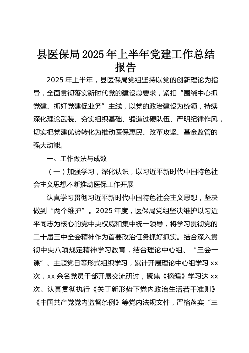 縣醫(yī)保局2025年上半年黨建工作總結(jié)報告VIP免費