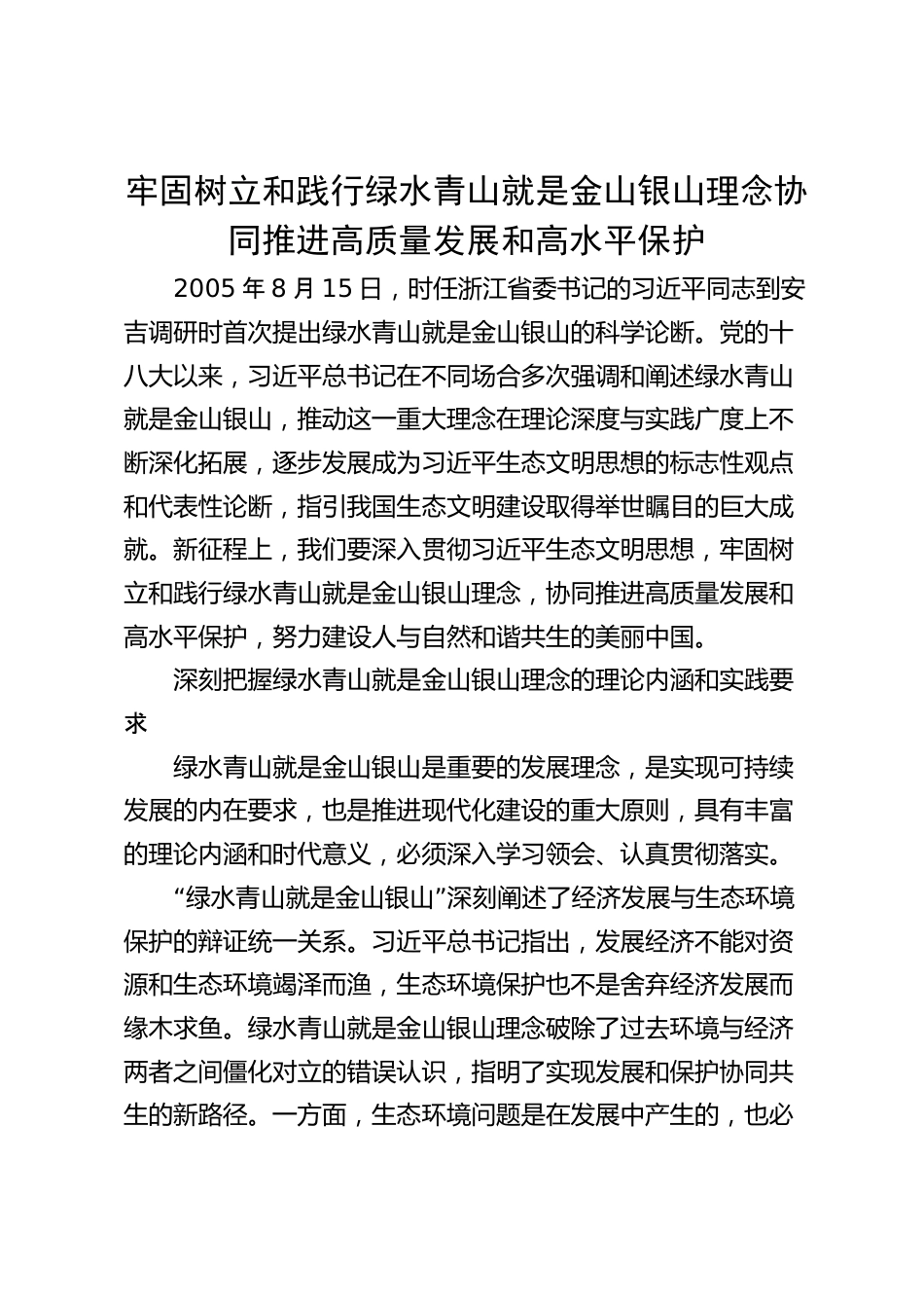 牢固樹立和踐行綠水青山就是金山銀山理念+協(xié)同推進(jìn)高質(zhì)量發(fā)展和高水平保護(hù)VIP免費(fèi)