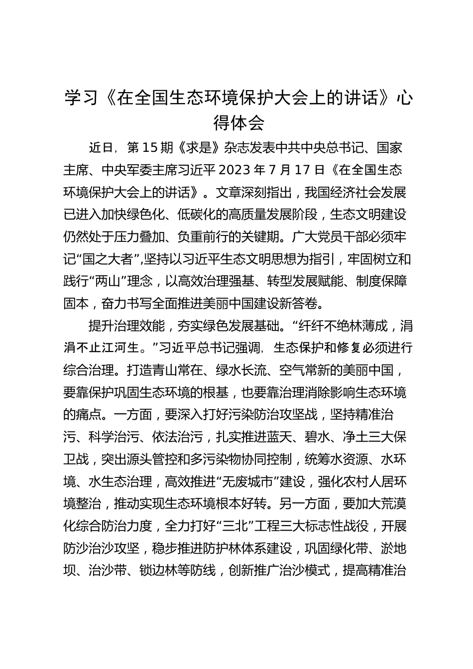 學(xué)習(xí)《在全國生態(tài)環(huán)境保護(hù)大會(huì)上的講話》心得體會(huì)VIP免費(fèi)