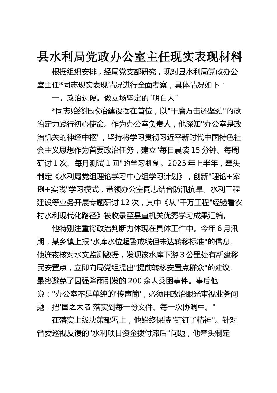 縣水利局黨政辦公室主任現(xiàn)實(shí)表現(xiàn)材料VIP免費(fèi)