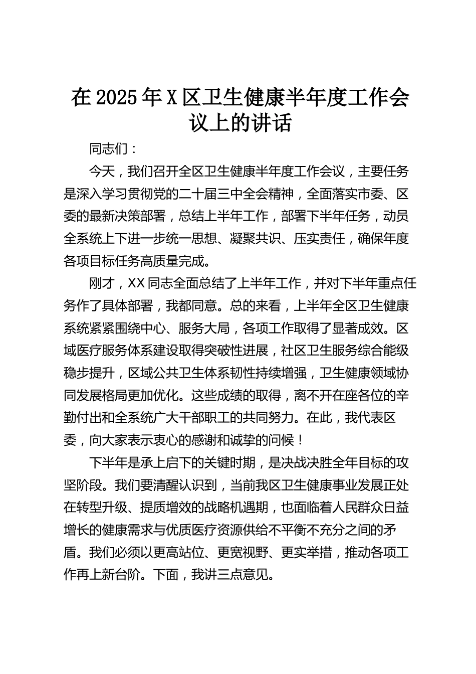 在2025年X區(qū)衛(wèi)生健康半年度工作會(huì)議上的講話VIP免費(fèi)