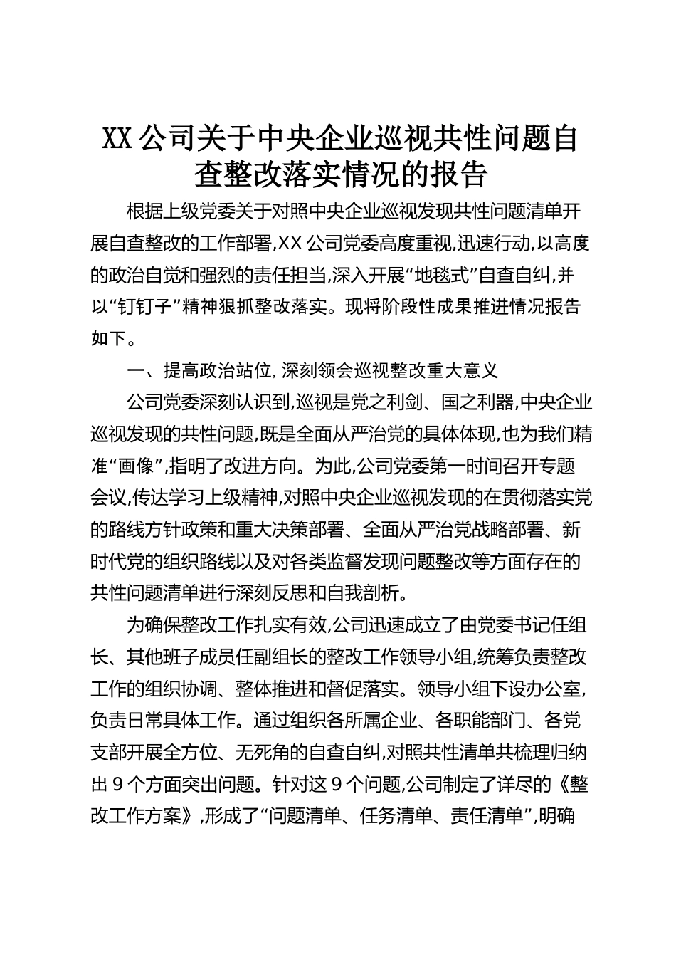 XX公司關(guān)于中央企業(yè)巡視共性問題自查整改落實(shí)情況的報(bào)告VIP免費(fèi)