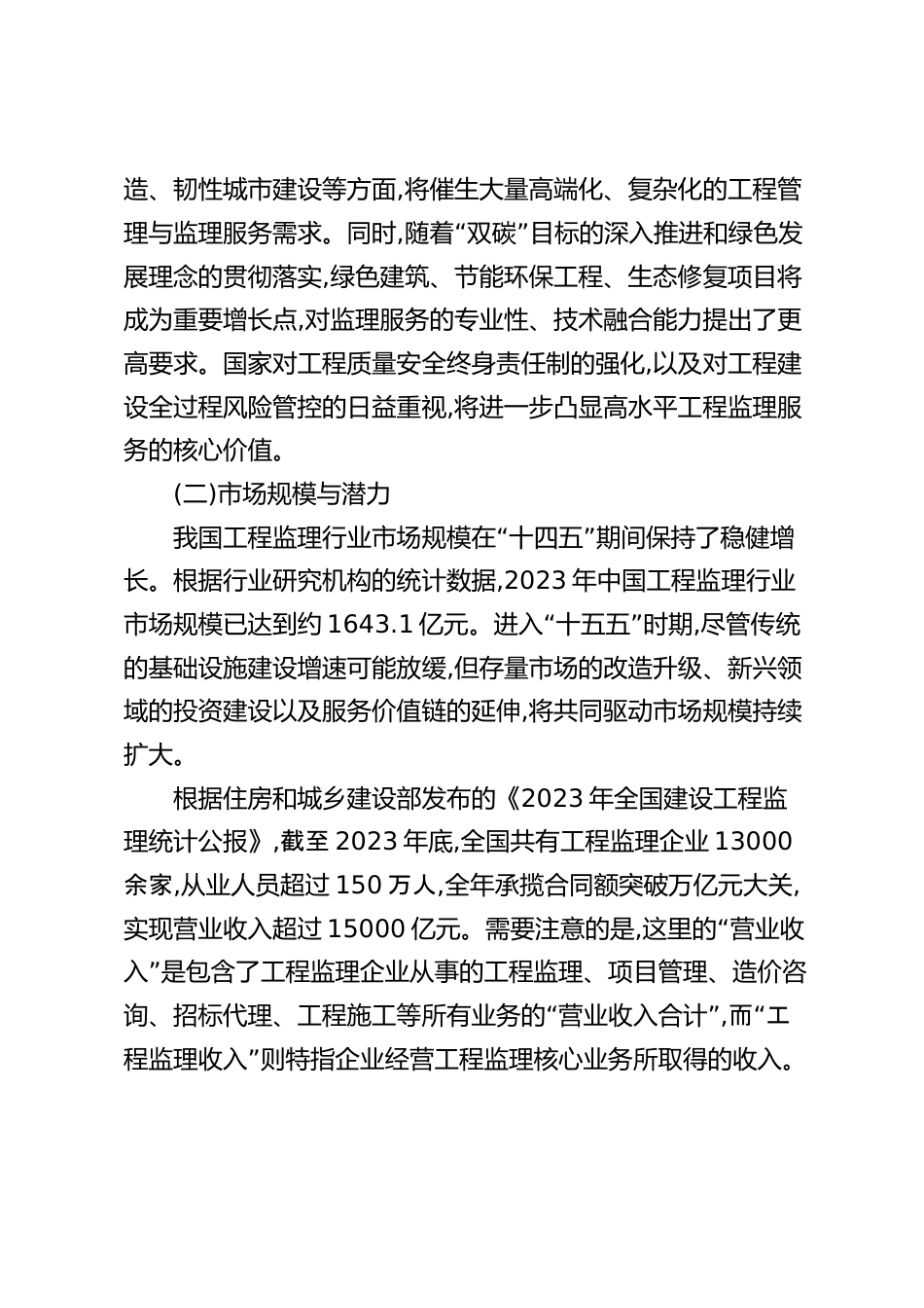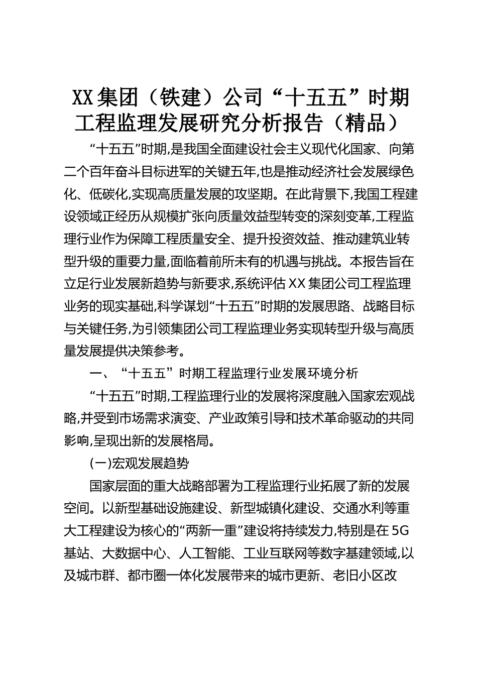 XX集團(tuán)(鐵建)公司“十五五”時(shí)期工程監(jiān)理發(fā)展研究分析報(bào)告(精品)VIP免費(fèi)
