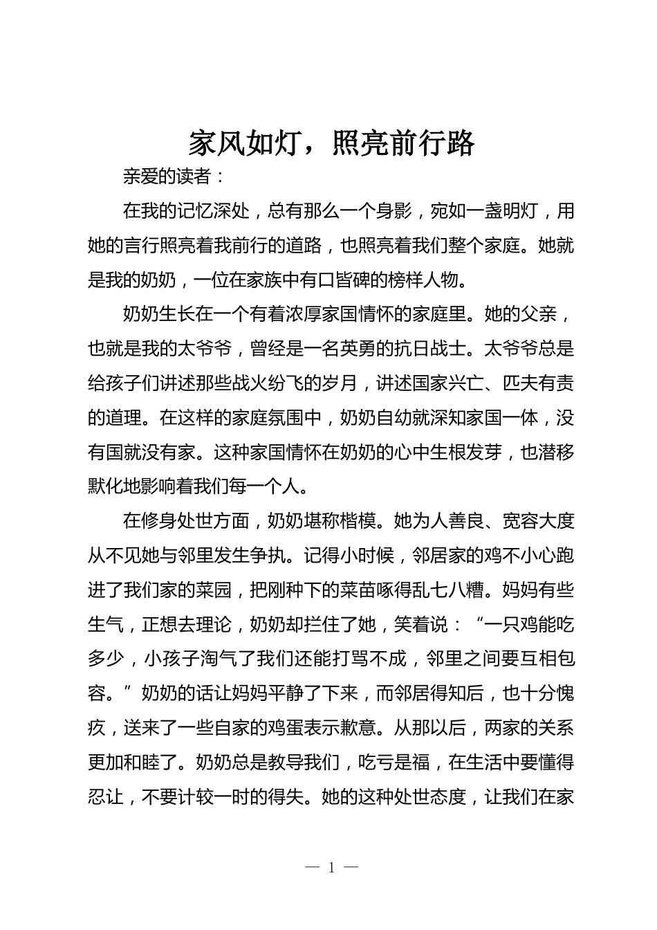 家風(fēng)如燈,照亮前行路VIP免費(fèi)