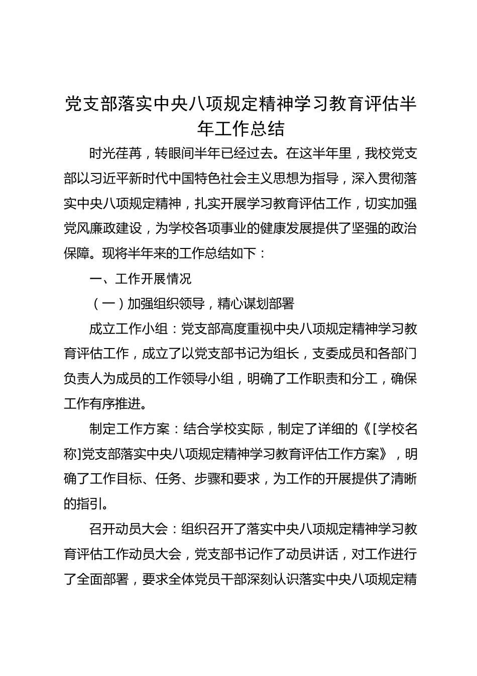 學(xué)校黨支部黨支部落實(shí)中央八項(xiàng)規(guī)定精神學(xué)習(xí)教育評(píng)估半年工作總結(jié)VIP免費(fèi)