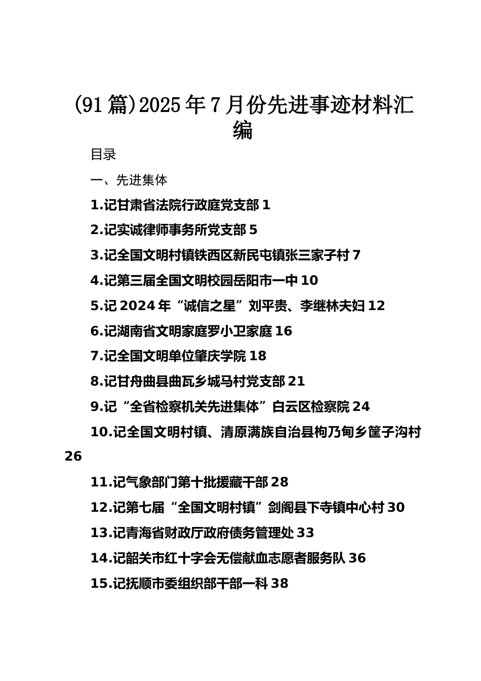 (91篇)2025年7月份先進事跡材料匯編VIP免費