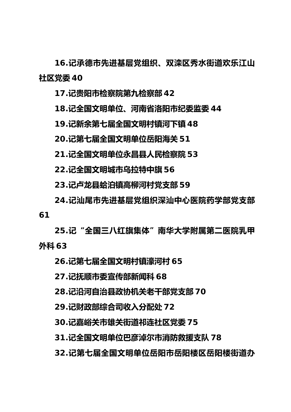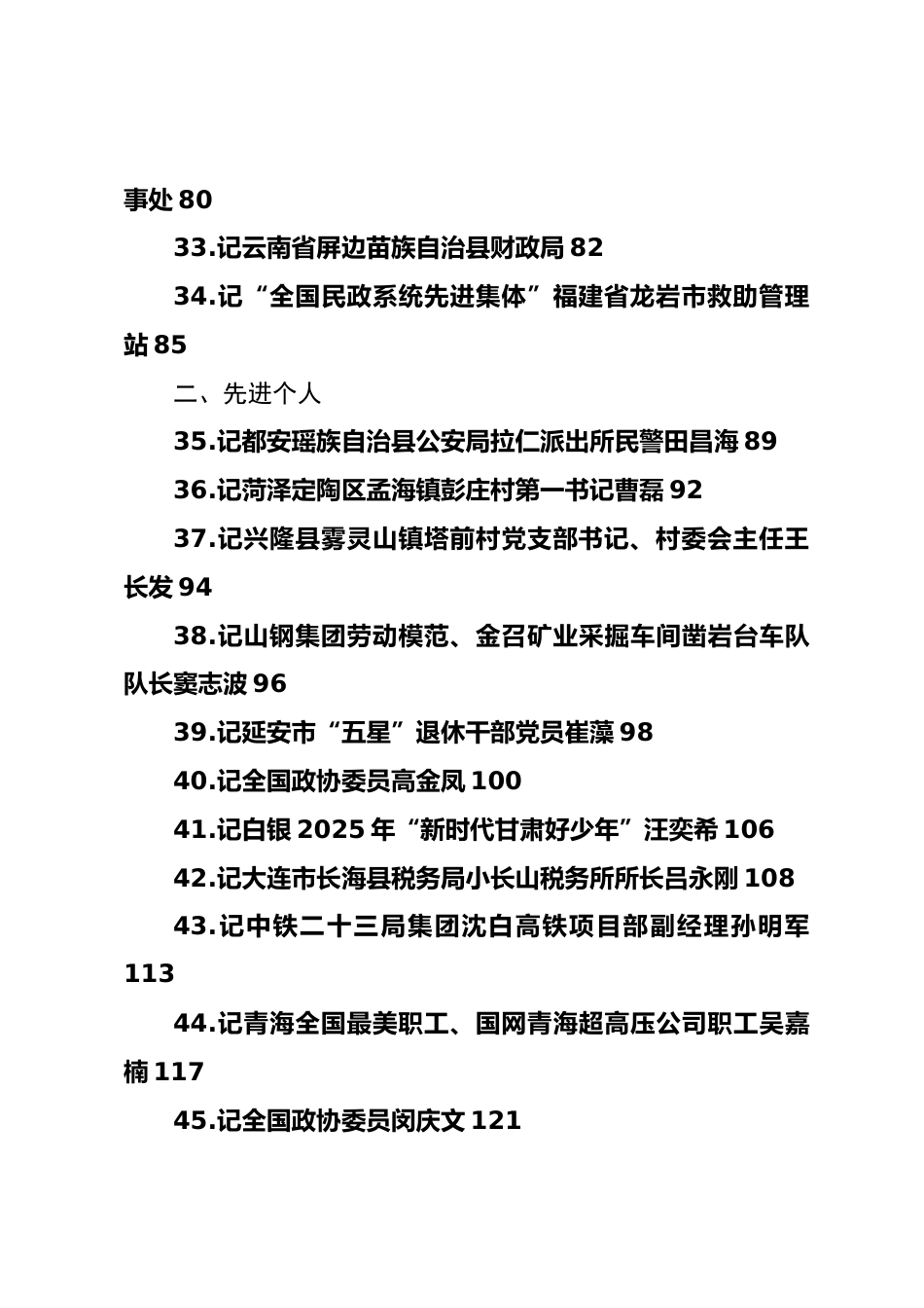 (91篇)2025年7月份先進事跡材料匯編目錄一、先進集體1.記甘肅省法院行政庭黨支部12.記實誠律師事務(wù)所黨支部53.記全國文明村鎮(zhèn)鐵西區(qū)新民屯鎮(zhèn)張三家子村74.記第三屆全國文明校園岳陽市一中105.記2024年“誠信之星”劉平貴、李繼林夫婦126.記湖南省文明家庭羅小衛(wèi)家庭167.記全國文明單位肇慶學(xué)院188.記甘舟曲縣曲瓦鄉(xiāng)城馬村黨支部219.記“全省檢察機關(guān)先進集體”白云區(qū)檢察院2410.記全國文明村鎮(zhèn)、清原滿族自治縣枸乃甸鄉(xiāng)筐子溝村2611.記氣象部門第十批援藏干部2812.記第七屆“全國文明村鎮(zhèn)”劍閣縣下寺鎮(zhèn)中心村3013.記青海省財政廳政府債務(wù)管理處3314.記韶關(guān)市紅十字會無...