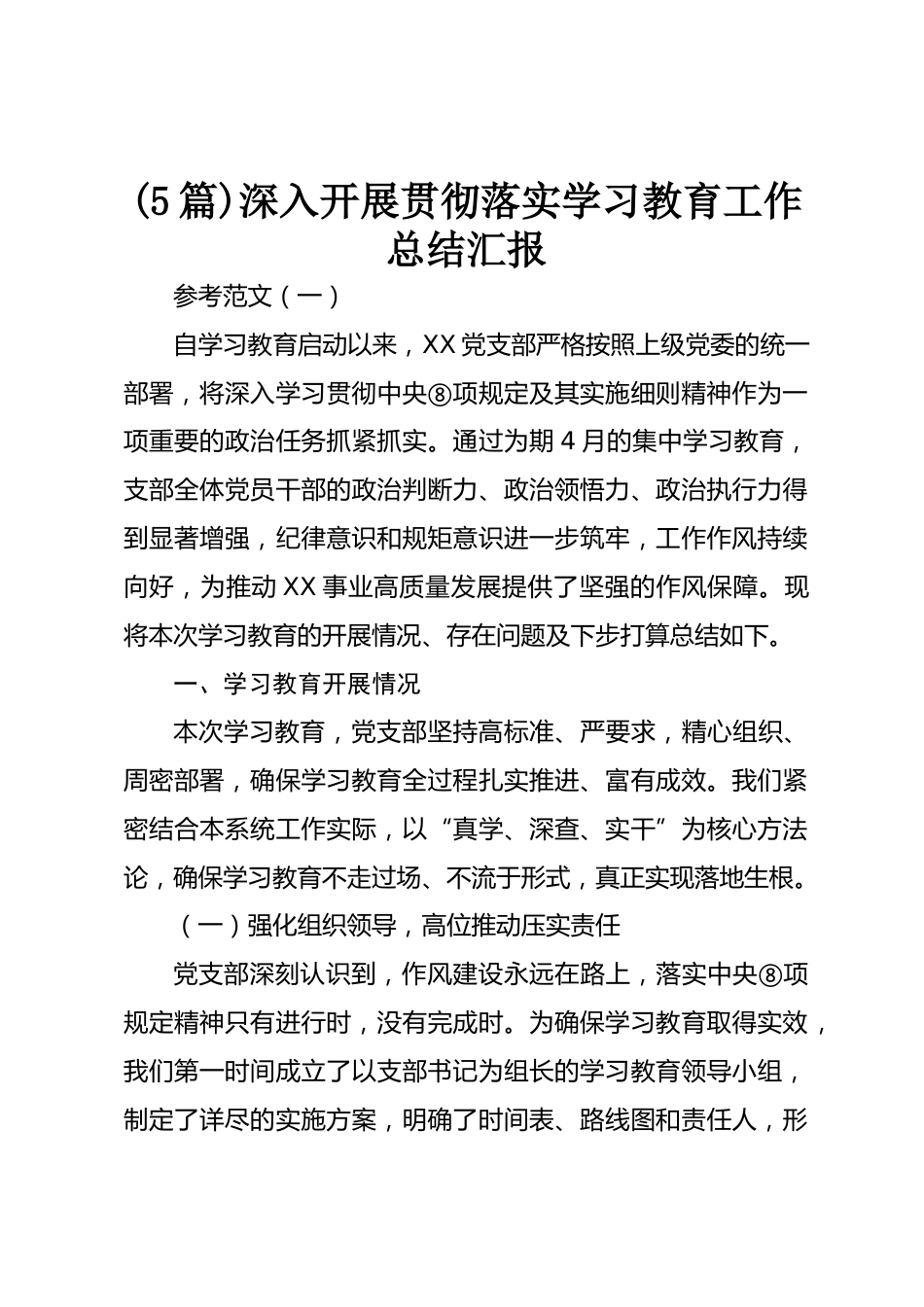 (5篇)深入開(kāi)展貫徹落實(shí)學(xué)習(xí)教育工作總結(jié)匯報(bào)VIP免費(fèi)