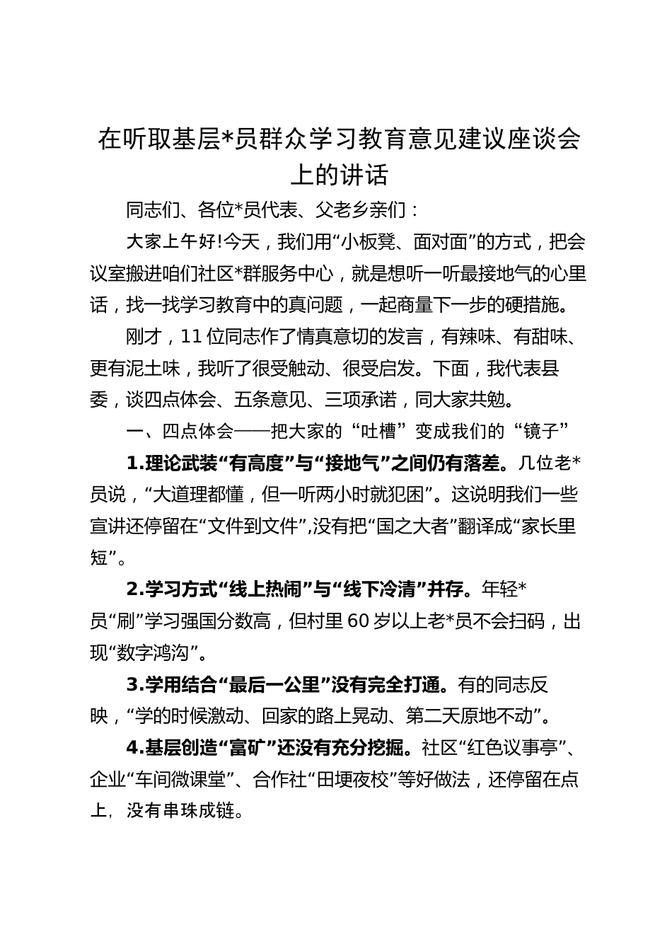 在聽取基層黨員群眾學(xué)習(xí)教育意見建議座談會上的講話VIP免費