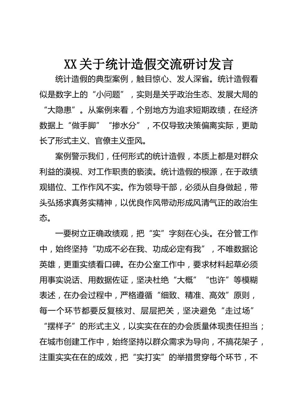 XX關(guān)于統(tǒng)計(jì)造假交流研討發(fā)言VIP免費(fèi)