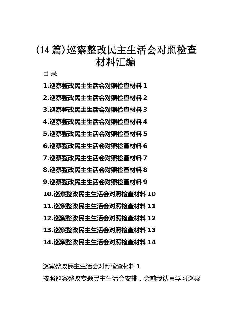 (14篇)巡察整改民主生活會對照檢查材料匯編VIP免費(fèi)