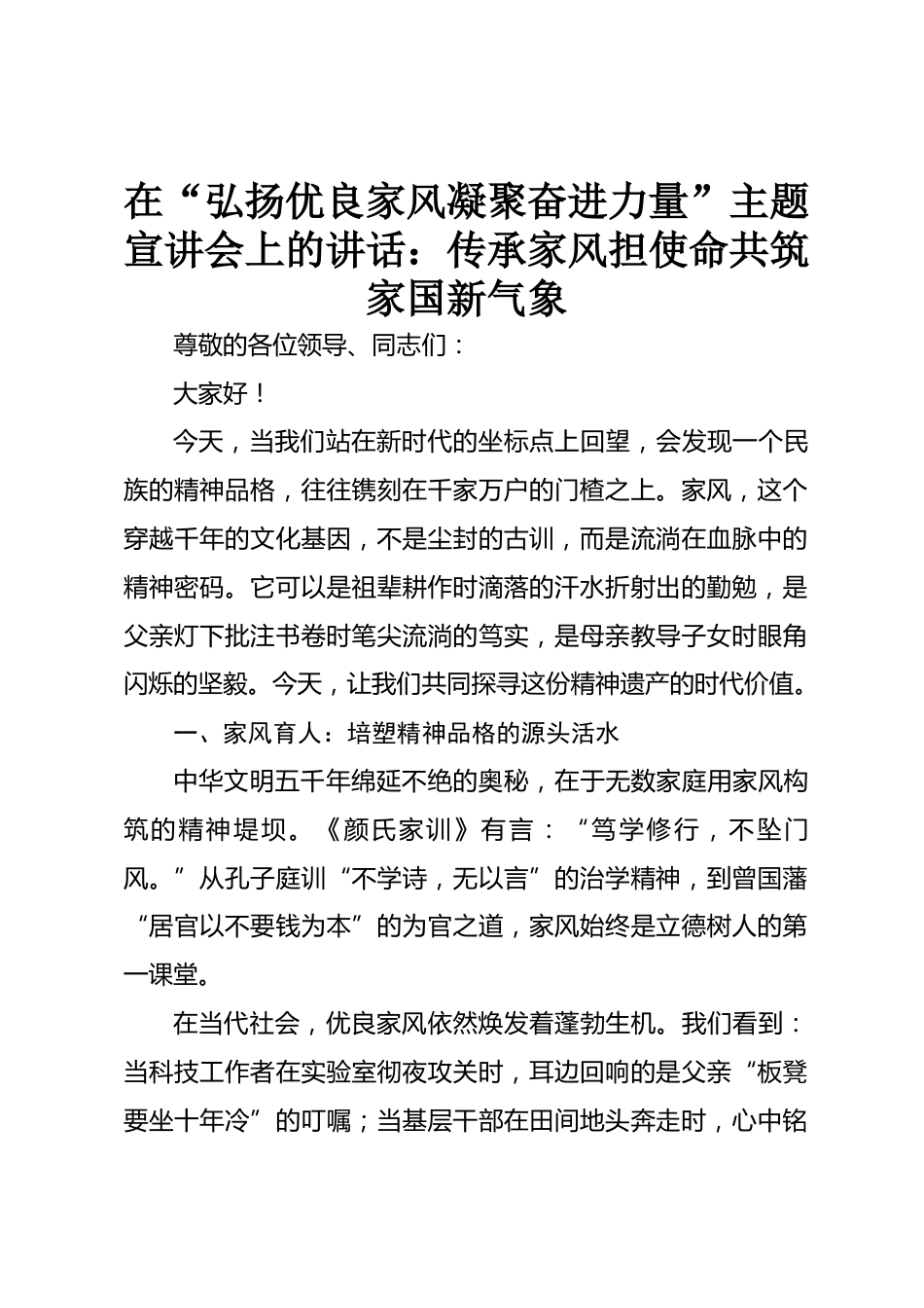 在“弘揚(yáng)優(yōu)良家風(fēng)凝聚奮進(jìn)力量”主題宣講會(huì)上的講話:傳承家風(fēng)擔(dān)使命共筑家國(guó)新氣象VIP免費(fèi)
