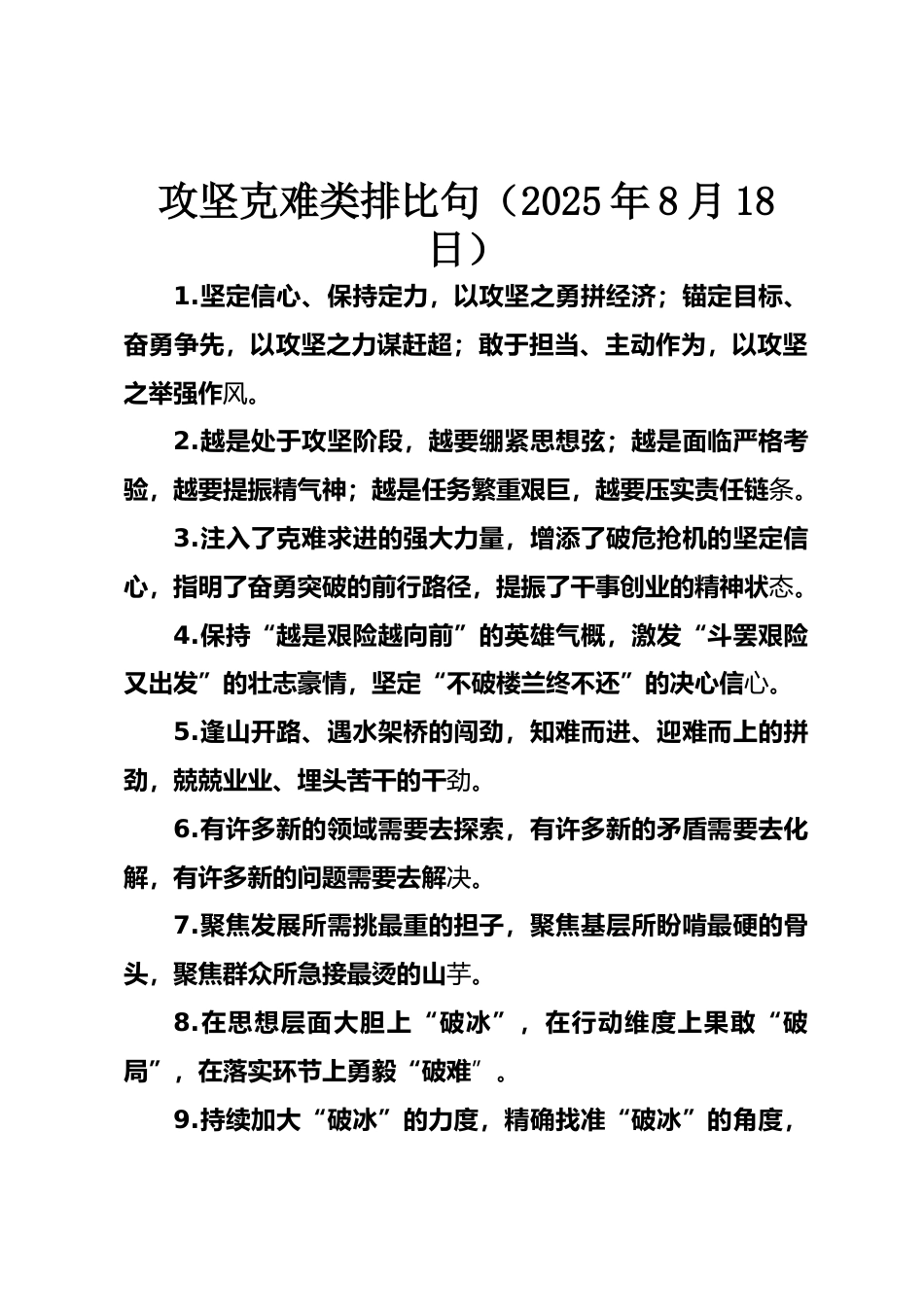 攻堅(jiān)克難類排比句(2025年8月18日)VIP免費(fèi)