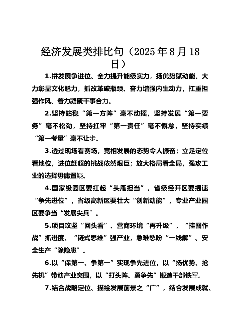 經(jīng)濟發(fā)展類排比句(2025年8月18日)VIP免費