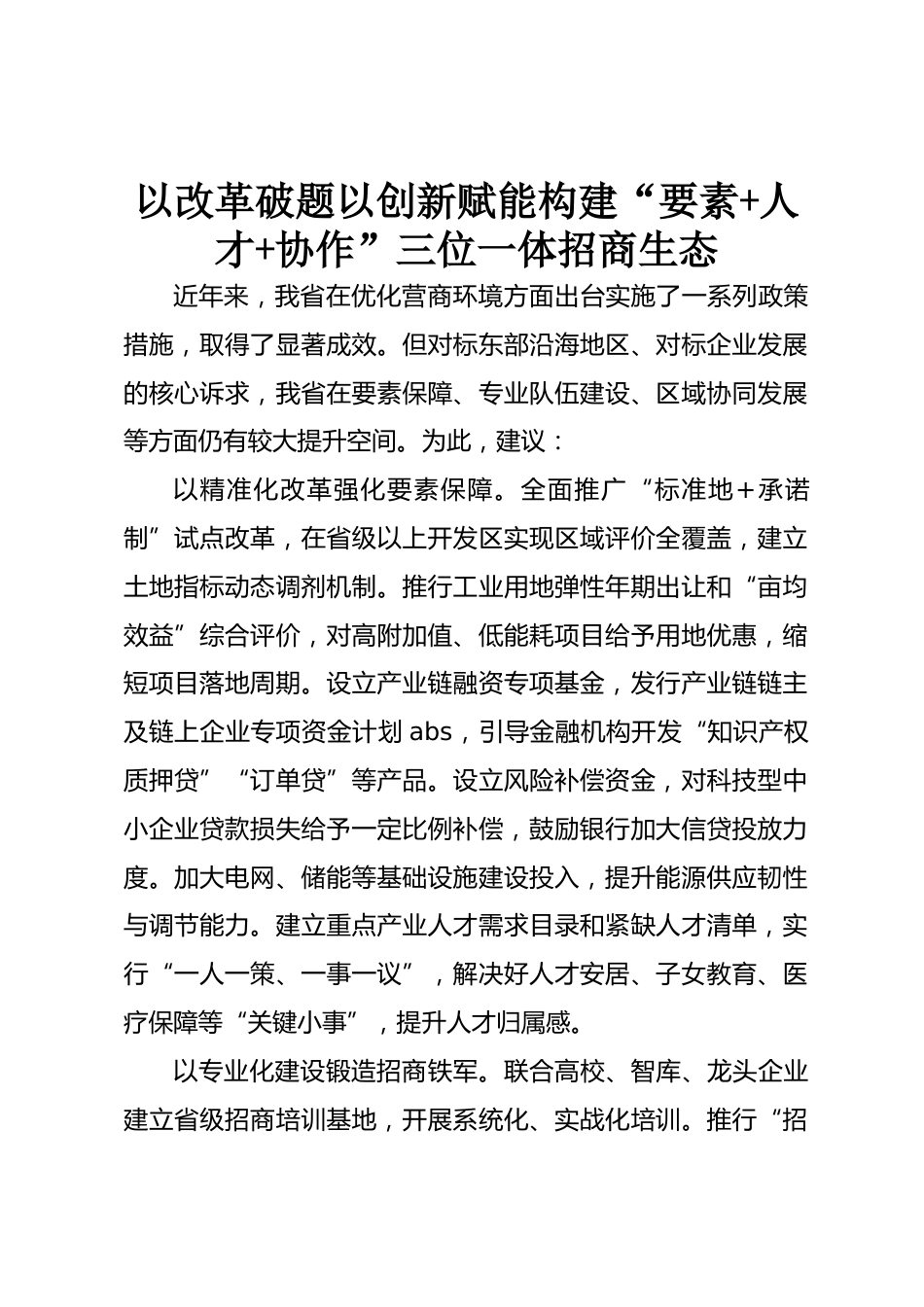 以改革破題以創(chuàng)新賦能構(gòu)建“要素+人才+協(xié)作”三位一體招商生態(tài)VIP免費(fèi)