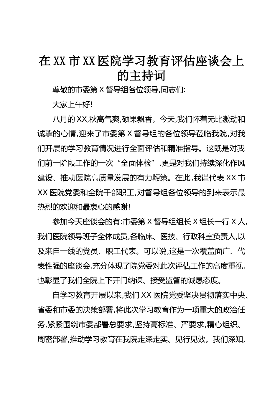 在XX市XX醫(yī)院學(xué)習(xí)教育評(píng)估座談會(huì)上的主持詞VIP免費(fèi)