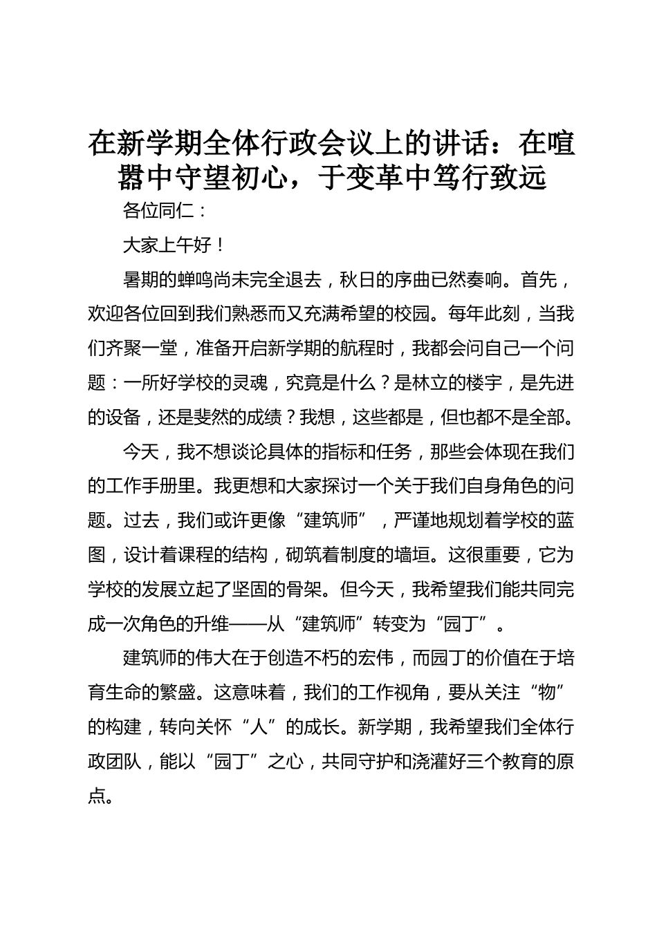 在新學(xué)期全體行政會(huì)議上的講話:在喧囂中守望初心,于變革中篤行致遠(yuǎn)VIP免費(fèi)