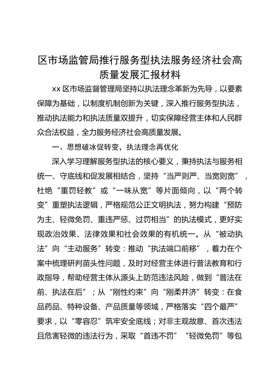 區(qū)市場監(jiān)管局推行服務(wù)型執(zhí)法服務(wù)經(jīng)濟(jì)社會高質(zhì)量發(fā)展匯報材料VIP免費(fèi)