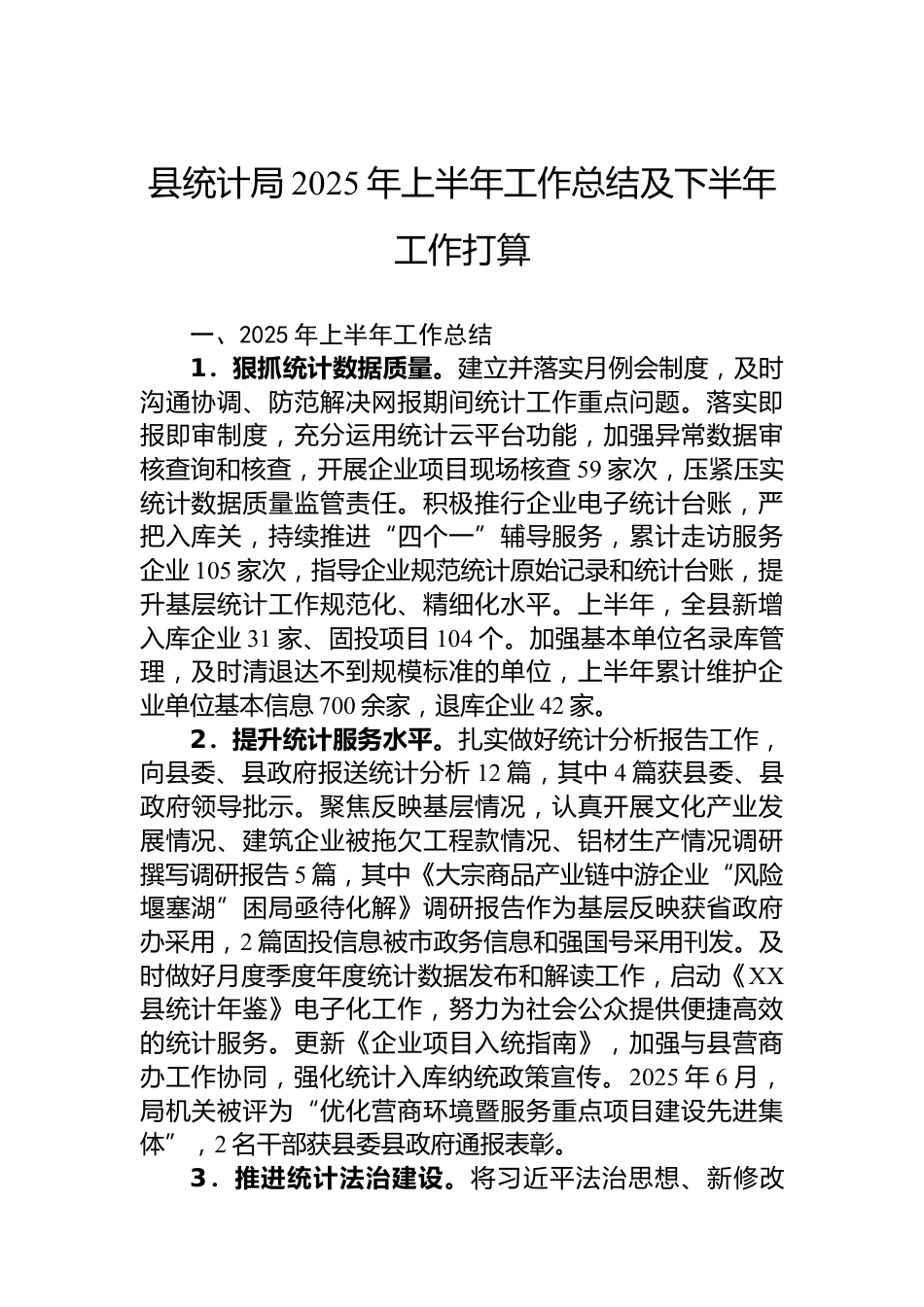 縣統(tǒng)計(jì)局2025年上半年工作總結(jié)及下半年工作打算VIP免費(fèi)