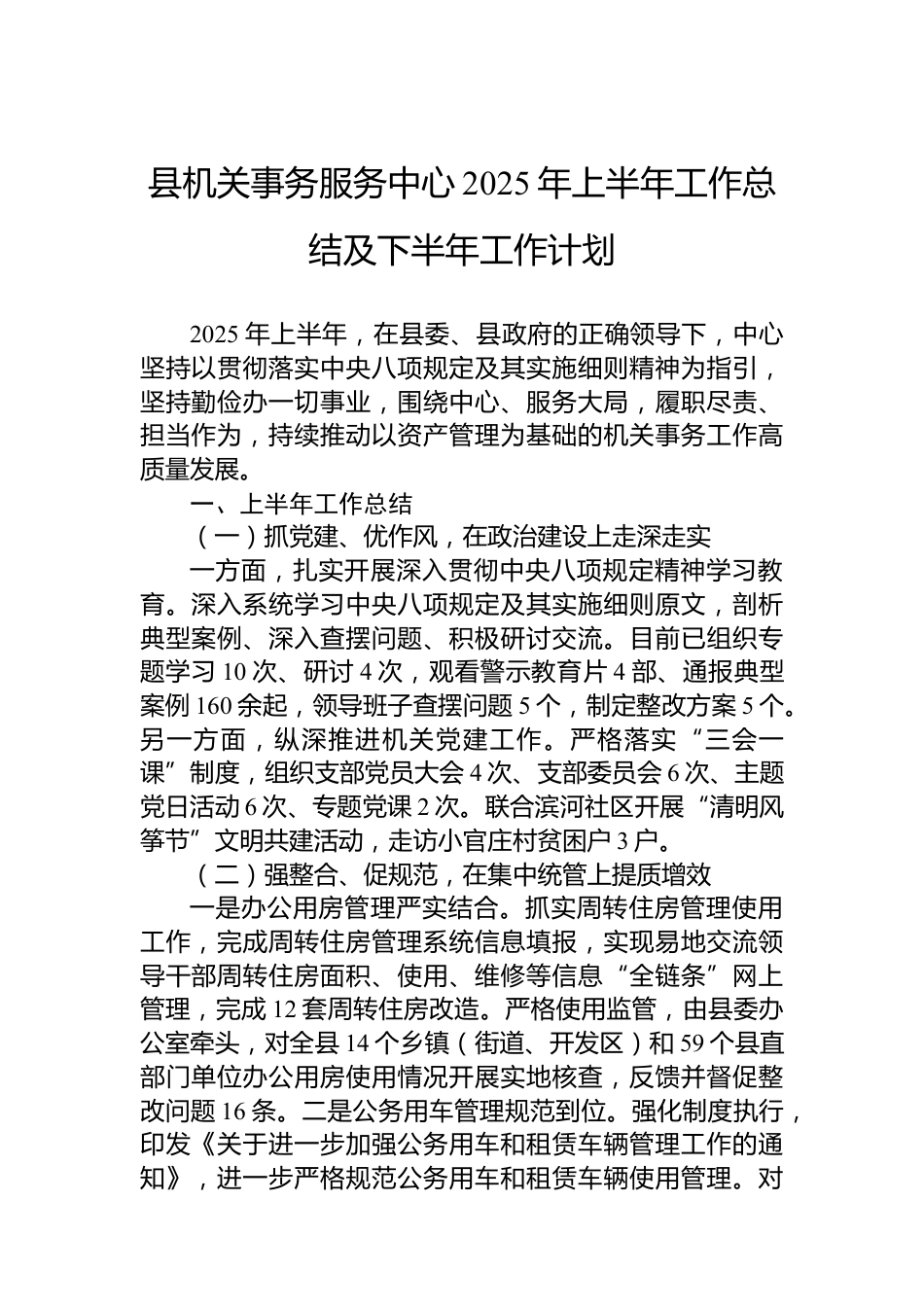 縣機(jī)關(guān)事務(wù)服務(wù)中心2025年上半年工作總結(jié)及下半年工作計(jì)劃VIP免費(fèi)