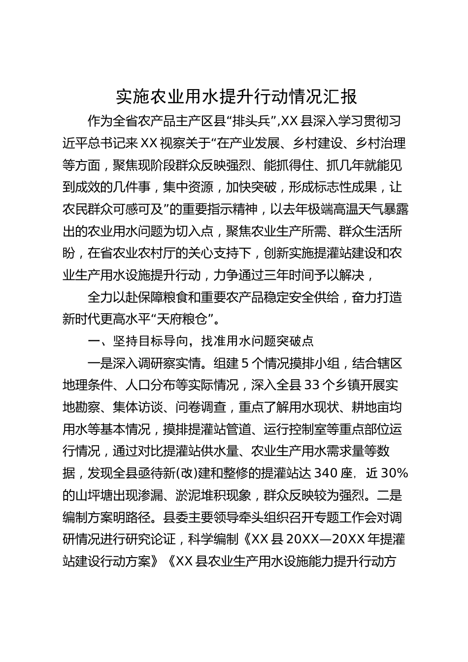 實(shí)施農(nóng)業(yè)用水提升行動(dòng)情況匯報(bào)VIP免費(fèi)