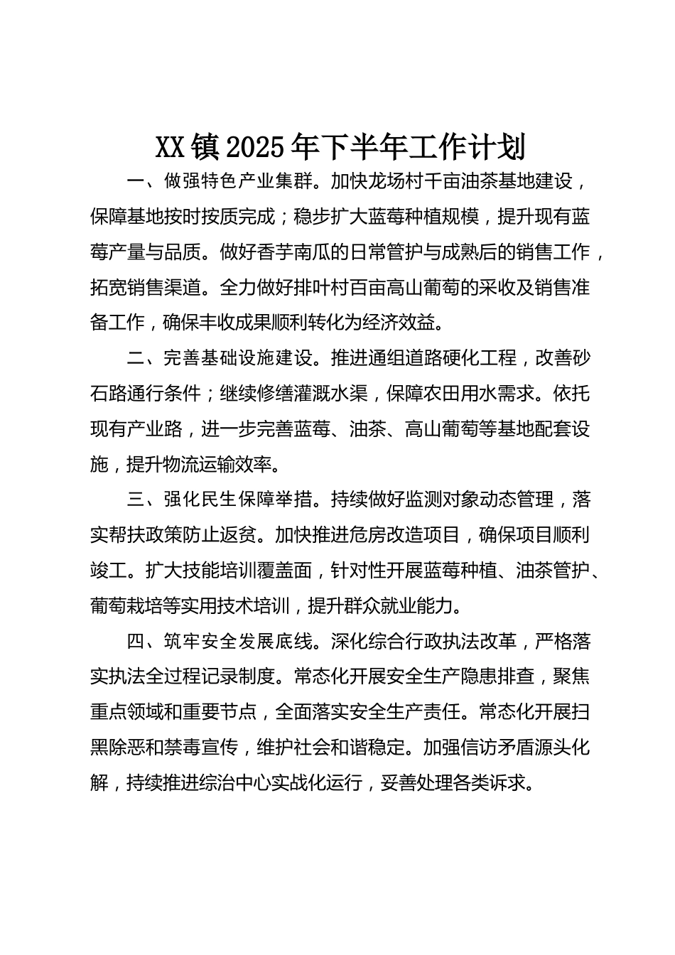 XX鎮(zhèn)2025年下半年工作計劃VIP免費