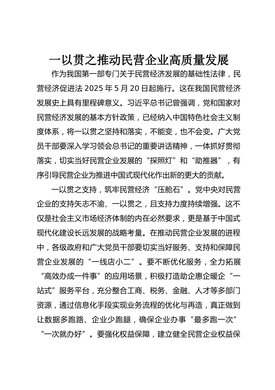 一以貫之 推動(dòng)民營(yíng)企業(yè)高質(zhì)量發(fā)展VIP免費(fèi)