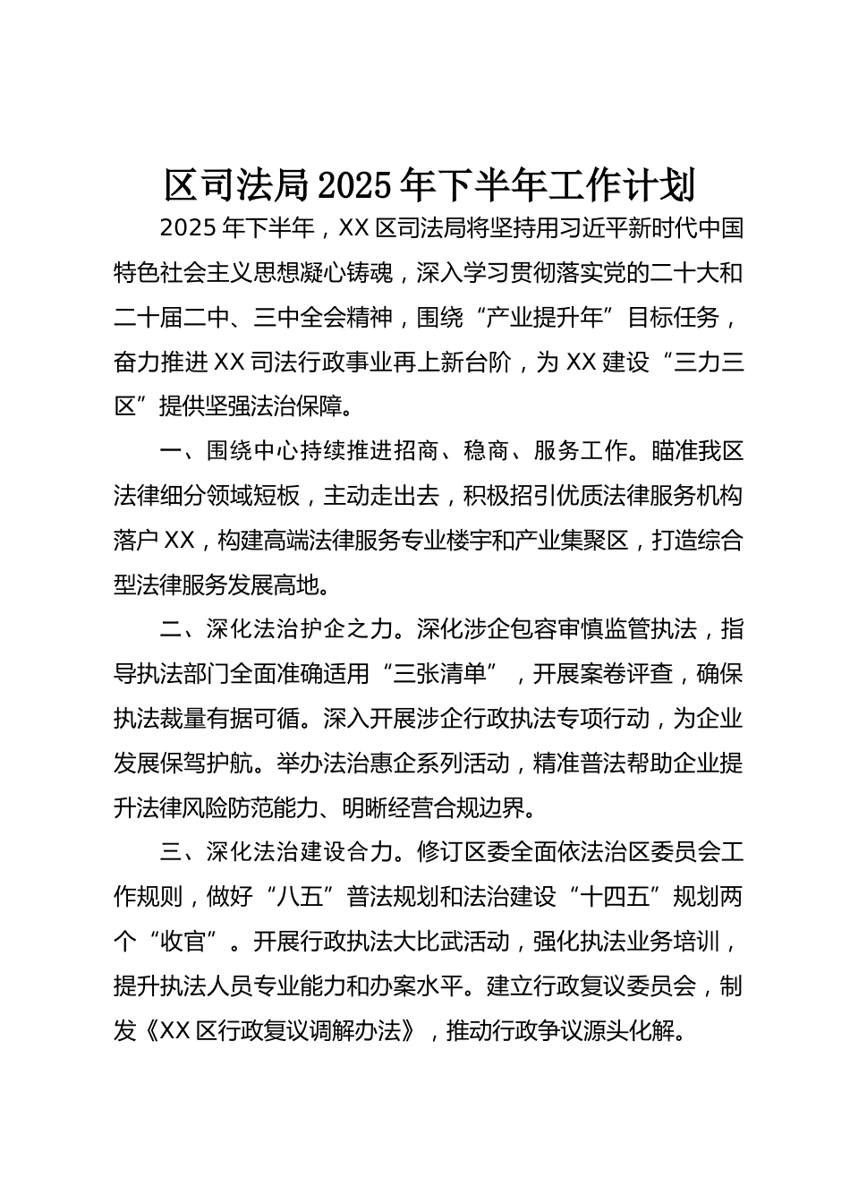 區(qū)司法局2025年下半年工作計(jì)劃VIP免費(fèi)