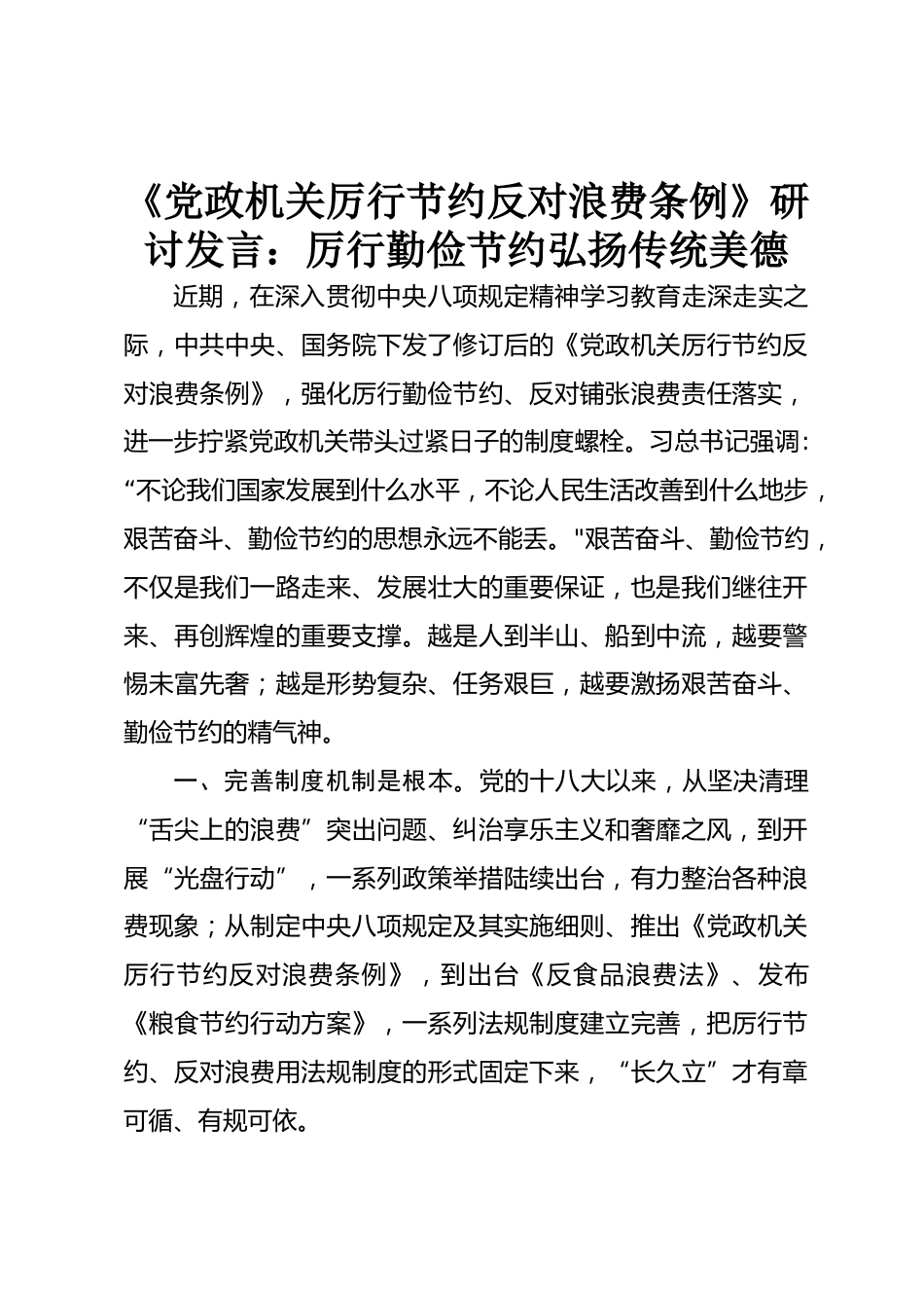 《黨政機關厲行節(jié)約反對浪費條例》研討發(fā)言:厲行勤儉節(jié)約 弘揚傳統(tǒng)美德VIP免費