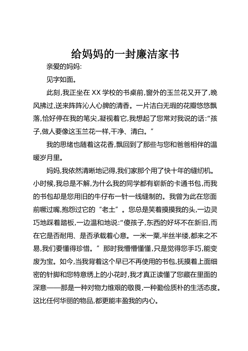 給媽媽的一封廉潔家書VIP免費(fèi)