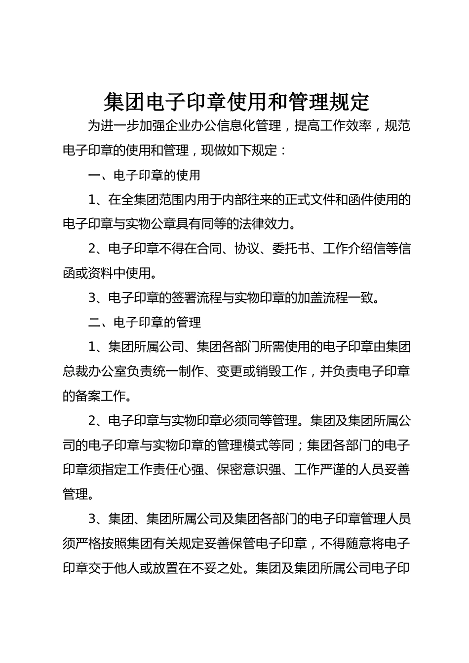 集團(tuán)電子印章使用和管理規(guī)定VIP免費(fèi)