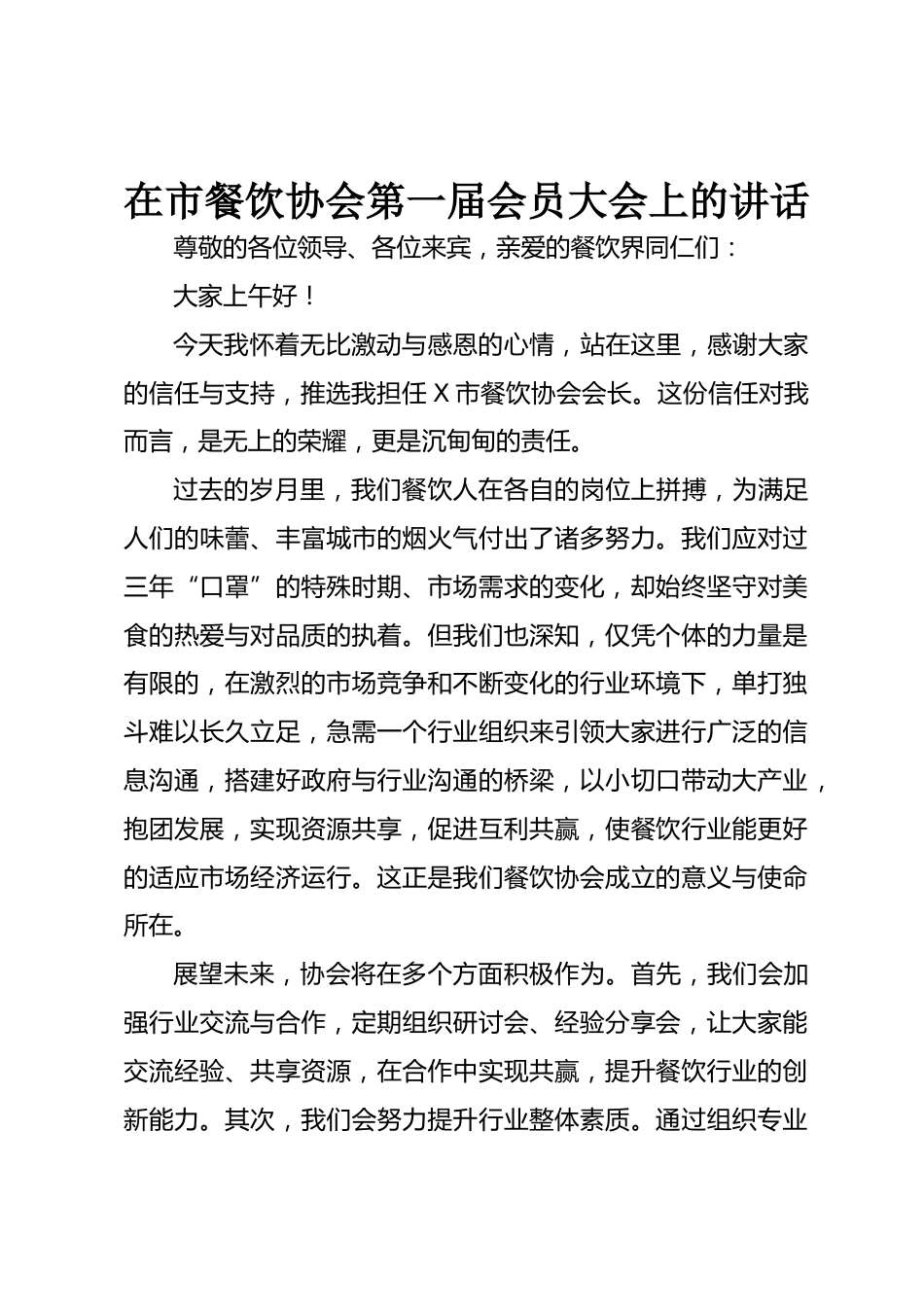 在市餐飲協(xié)會第一屆會員大會上的講話VIP免費
