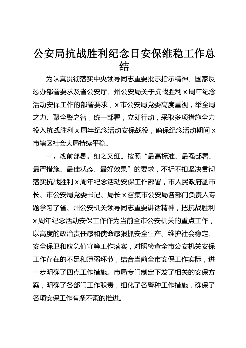 公安局抗戰(zhàn)勝利紀(jì)念日安保維穩(wěn)工作總結(jié)VIP免費(fèi)