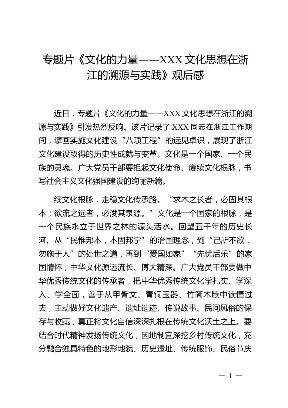 專題片《文化的力量——習(xí)近平文化思想在浙江的溯源與實(shí)踐》觀后感VIP免費(fèi)