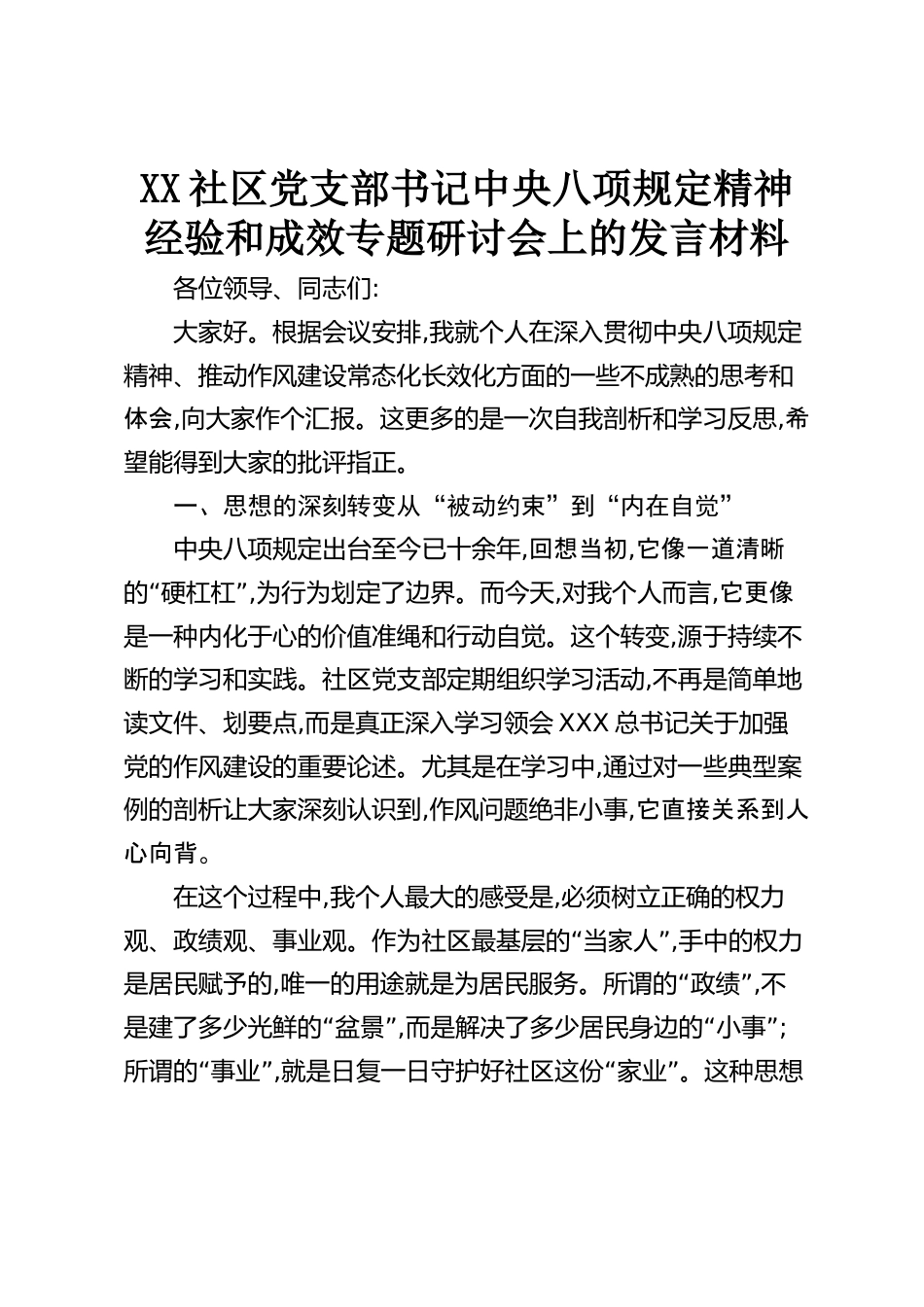 XX社區(qū)黨支部書記中央八項(xiàng)規(guī)定精神經(jīng)驗(yàn)和成效專題研討會上的發(fā)言材料VIP免費(fèi)