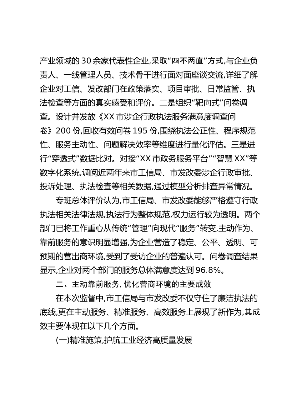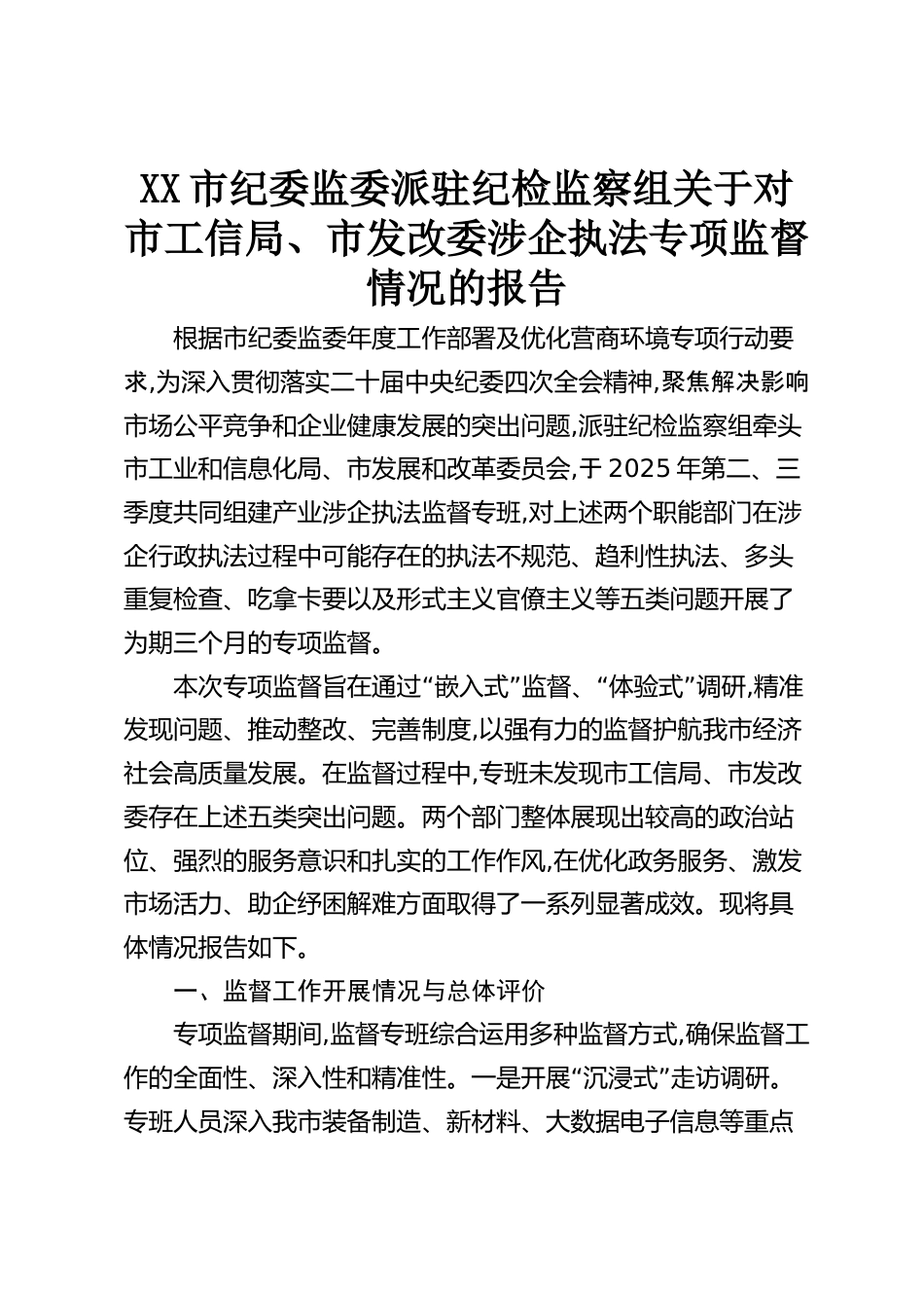 XX市紀(jì)委監(jiān)委派駐紀(jì)檢監(jiān)察組關(guān)于對(duì)市工信局、市發(fā)改委涉企執(zhí)法專項(xiàng)監(jiān)督情況的報(bào)告VIP免費(fèi)