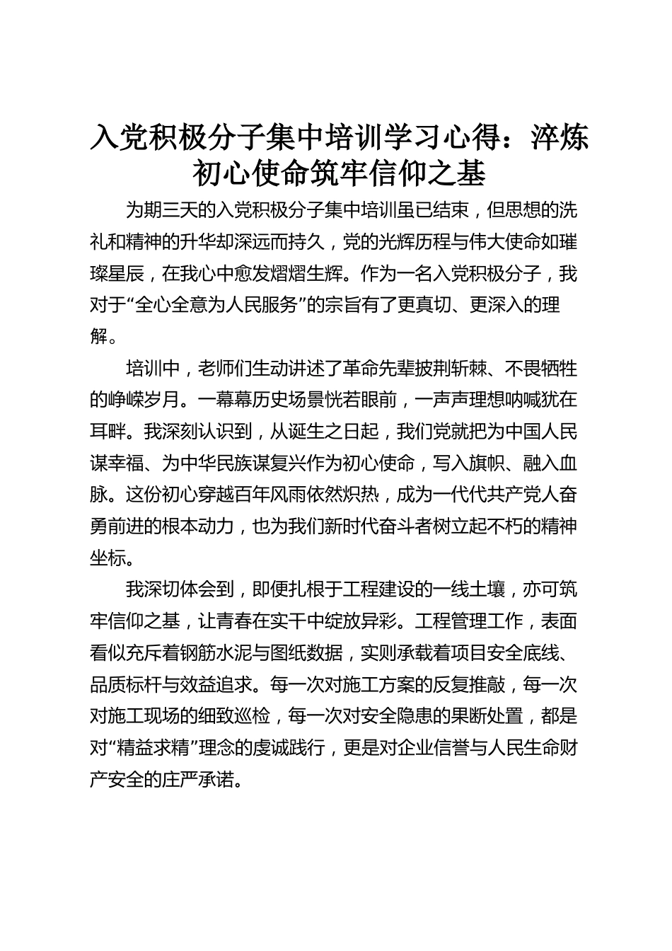 入黨積極分子集中培訓(xùn)學習心得:淬煉初心使命筑牢信仰之基VIP免費
