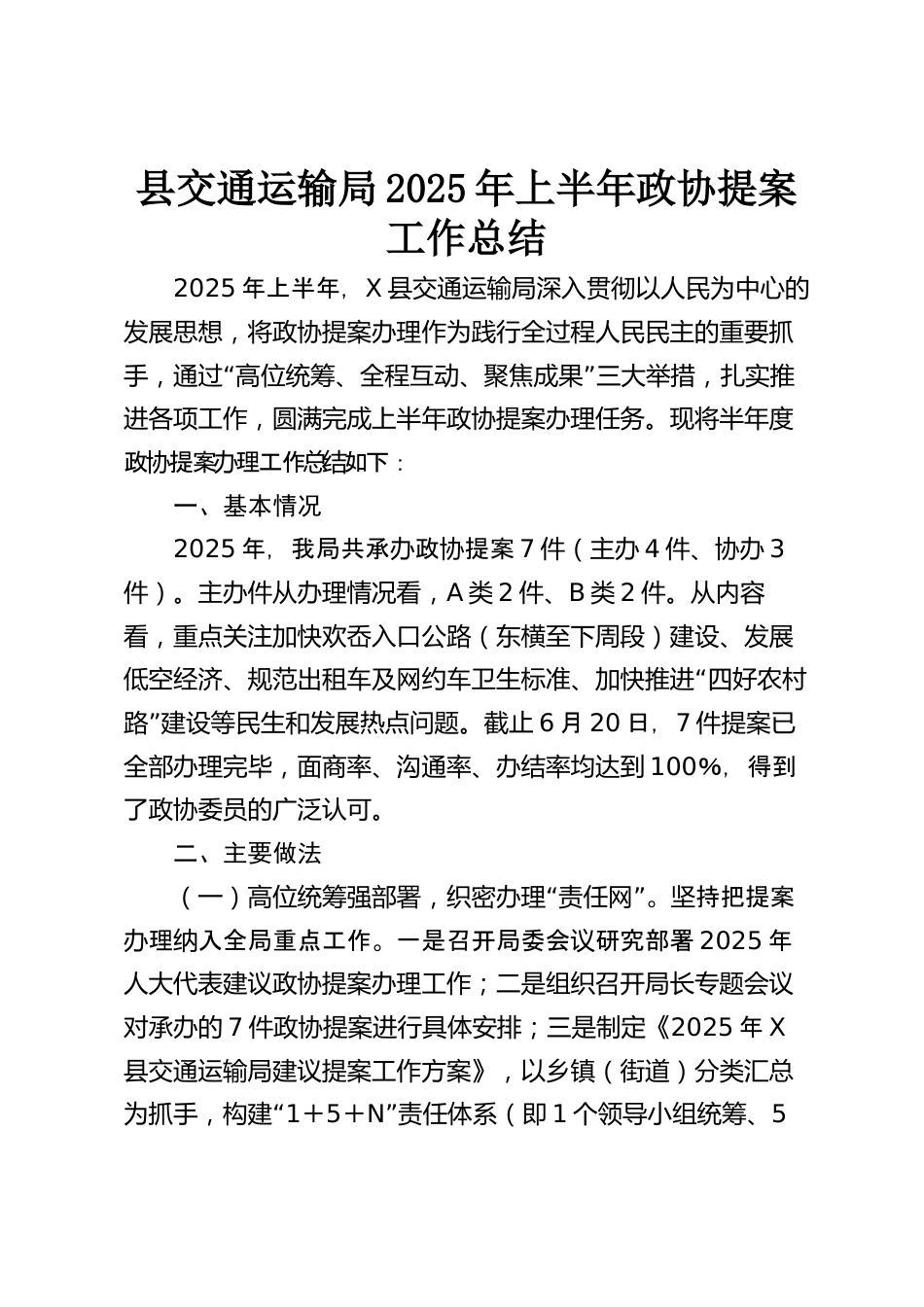 縣交通運輸局2025年上半年政協(xié)提案工作總結(jié)VIP免費