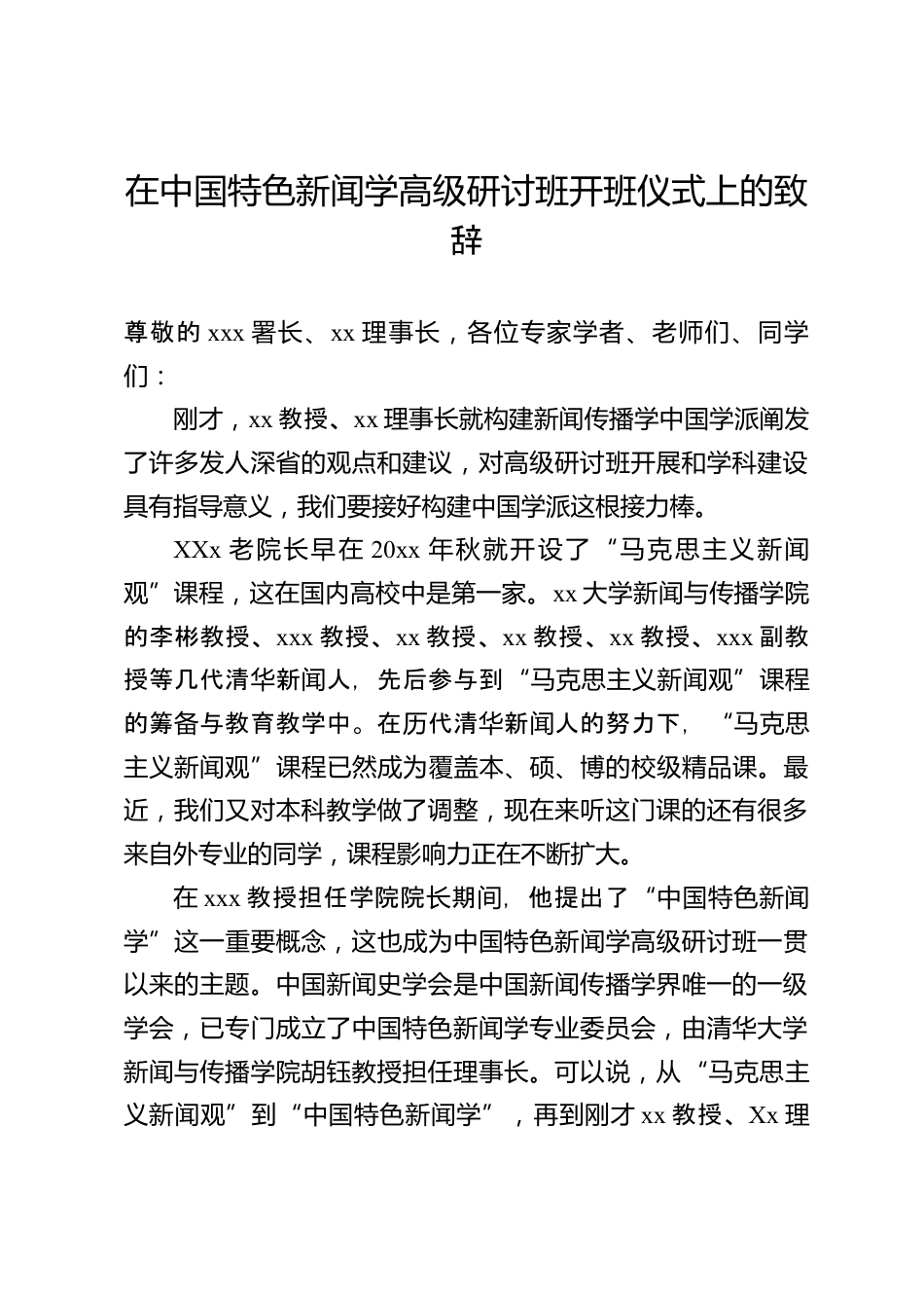 在中國特色新聞學(xué)高級研討班開班儀式上的致辭VIP免費