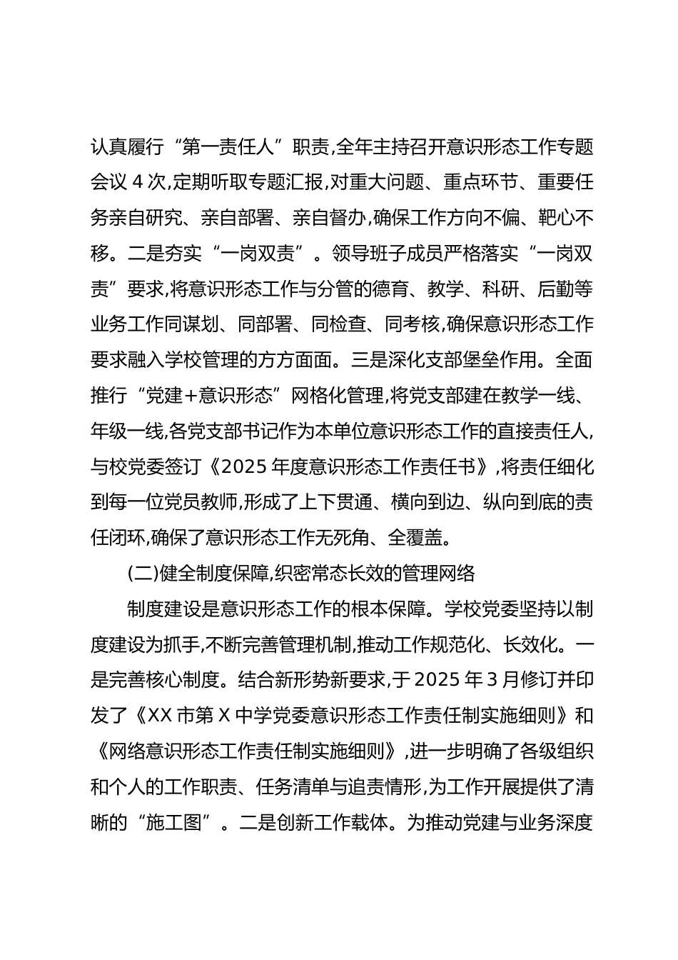XX市第X中學(xué)2025年度意識(shí)形態(tài)工作總結(jié)
