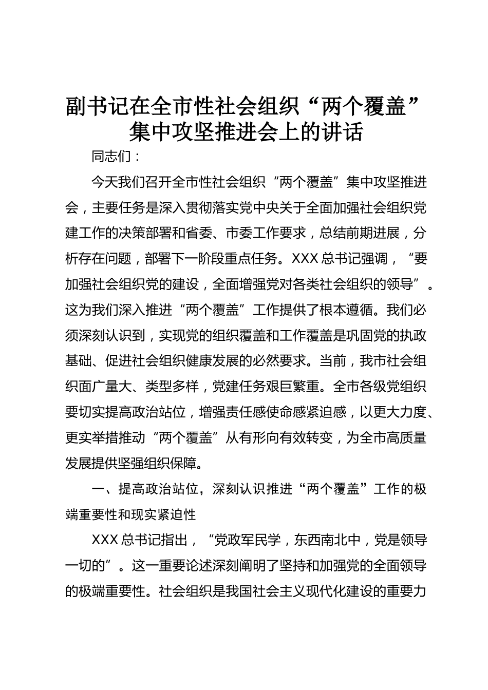 副書記在全市性社會(huì)組織“兩個(gè)覆蓋”集中攻堅(jiān)推進(jìn)會(huì)上的講話