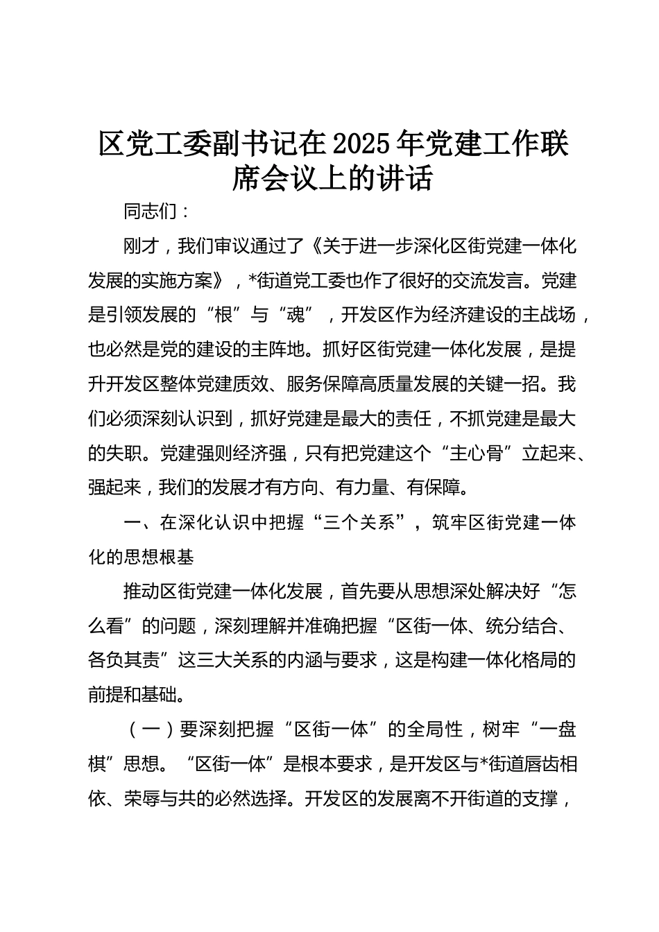 區(qū)黨工委副書記在2025年黨建工作聯(lián)席會(huì)議上的講話