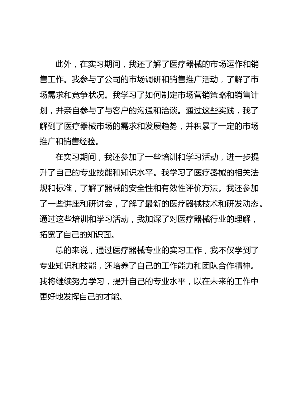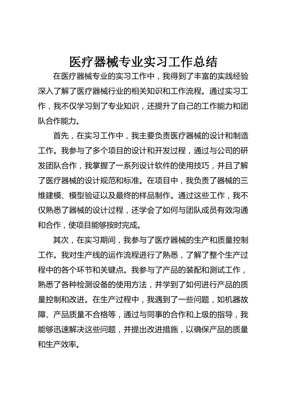 醫(yī)療器械專業(yè)實(shí)習(xí)工作總結(jié)