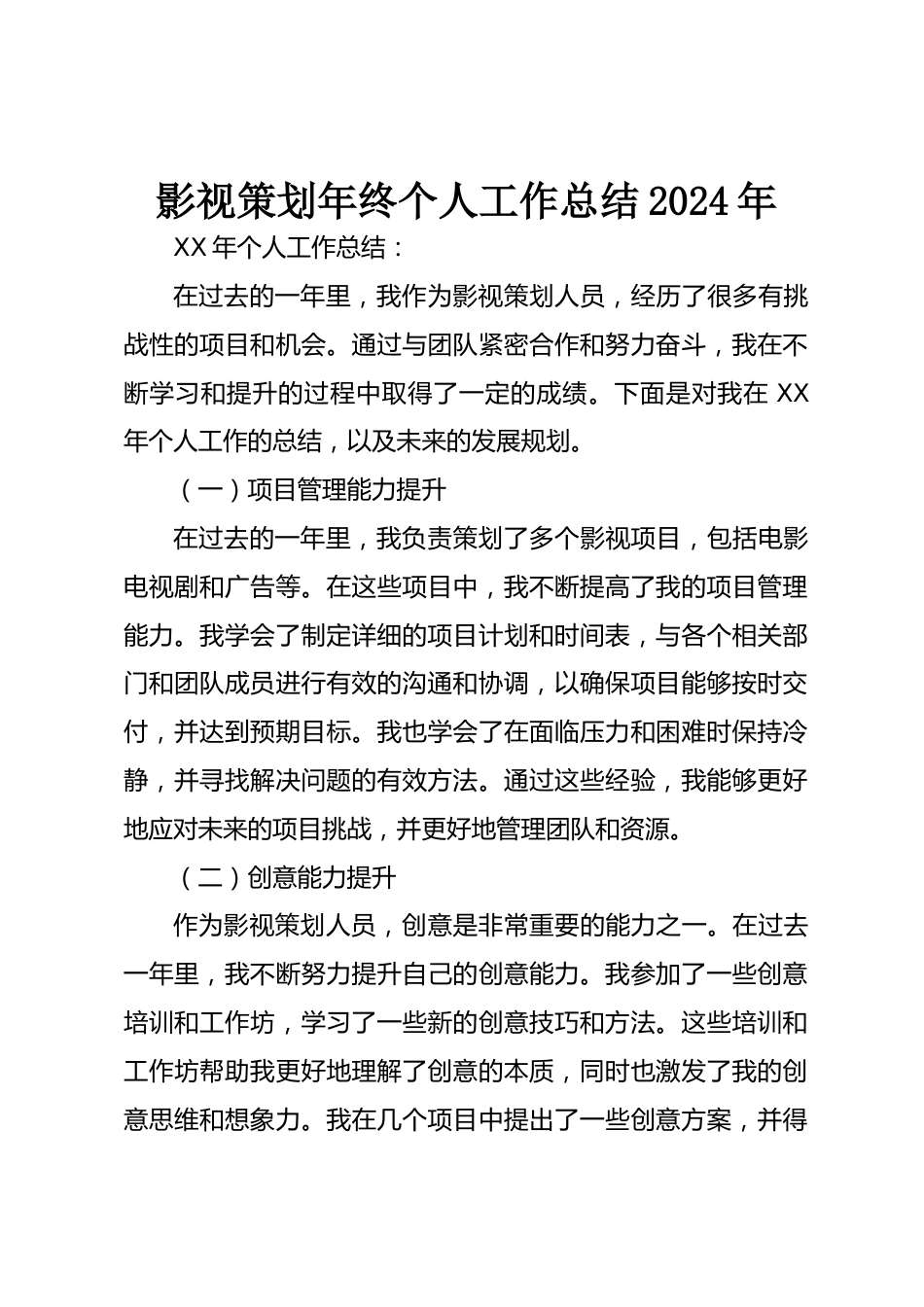 影視策劃年終個(gè)人工作總結(jié)2024年