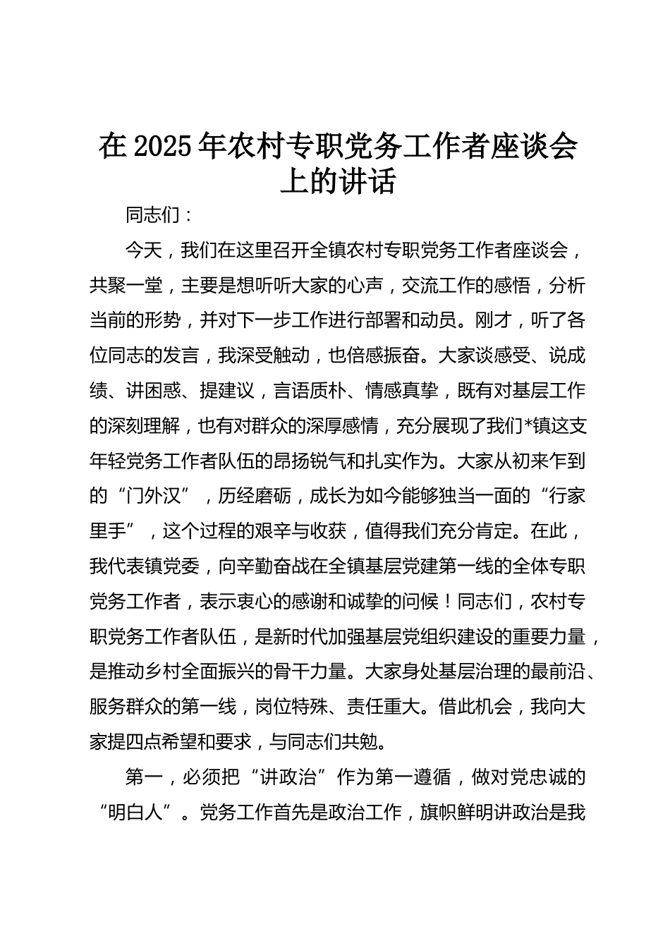 在2025年農(nóng)村專職黨務(wù)工作者座談會上的講話